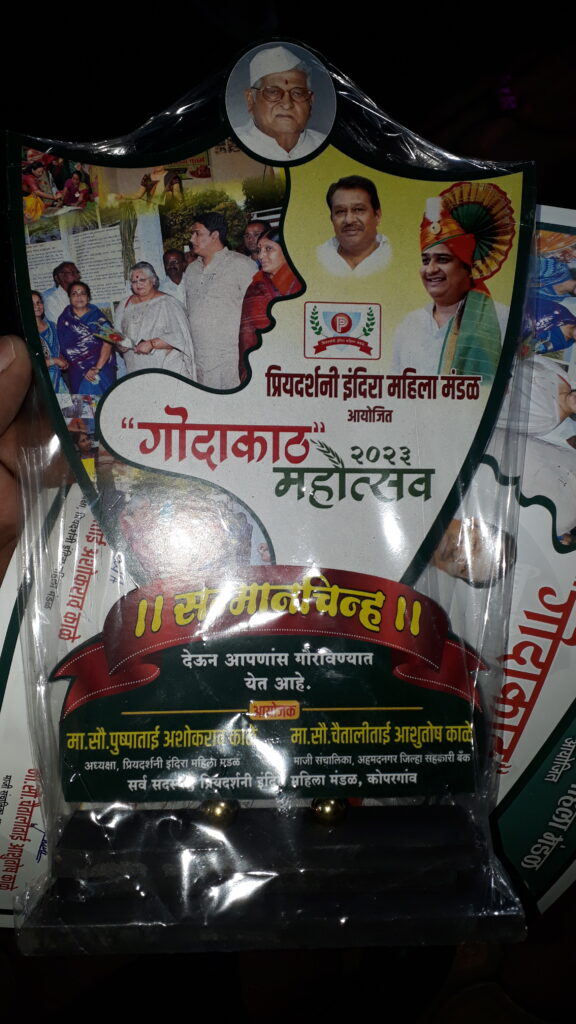 शिवसुत्र युवा प्रतिष्ठानच्या सामाजिक कार्याची दखल घेत कोपरगाव येथे प्रियदर्शनी महिला मंडळ आयोजित गोदाकठ महोत्सवाचा एका सांस्कृतीक कार्यकार्यक्रमात शिवसुत्र युवा प्रतिष्ठानचा आदर्श सामाजिक संघटना म्हणून आमदार आशुतोष काळे व चैतालीताई काळे यांच्या हस्ते अध्यक्ष विशाल गुरसळ, राणा वक्ते, अक्षय गुरसळ यांना प्रशस्तिपत्र व सन्मान चिन्ह देऊन गौरवण्यात आले.
