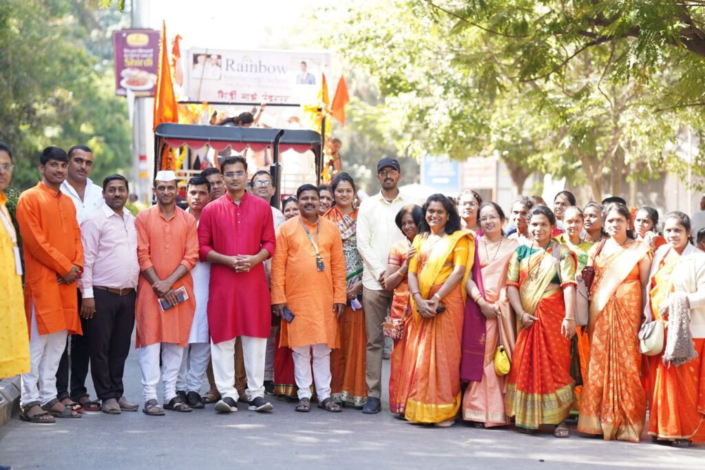 साईबाबानंप्रति भाविकांची अढळ श्रद्धा असून गेल्या वर्षी लाखो भाविकांच्या उपस्थितीत साई परिक्रमा सोहळा साजरा झाला होता, त्याचप्रमाणे यंदाचा सोहळा साई परिक्रमा महोत्सव २०२३ देशविदेशातील भाविकांच्या साक्षीने साजरा झाला असुन यात वारकरी व विठ्ठलाच्या रुपात असलेले कोपरगांव येथील रेन्बो इंटरनॅशनल स्कुलच्या विद्यार्थी साईबाबांचा जयघोष करत सहभागी होते. या महोत्सवाची तयारी ग्रीन एन क्लीन फाउंडेशन, शिर्डी ग्रामस्थ, शिर्डी नगरपरिषद, पोलीस प्रशासन , साईभक्त यांच्यासह रेन्बो स्कुलचे विश्वस्त आकाश नागरे यांनी महत्त्वपूर्ण योगदान दिले.परिक्रमा मार्गावर रांगोळ्या काढून भविकांचे स्वागत करण्यात आले. ठिकठिकाणी चहा-नाश्ताची सोय करण्यात आली होती. महामार्गावर पोलीस बंदोबस्त ठेवण्यात आला होता. तेथील जड वाहतूक बाह्यवळण मार्गाने वळवण्यात आली होती. साईनामाचा गजर आणि घोषणा देत साईभक्तांनी तब्बल १४ किलोमीटरची ही परिक्रमा पूर्ण केली. त्यासोबतच मार्गावर स्वच्छता मोहीमही राबवण्यात आली. सिद्धी गोंदकर – संत मुक्ताबाई, सई सूर्यवंशी – संत जनाबाई, यादव साई भावनी – संत मीराबाई, दत्ता डोखे सर – संत नामदेव, साई गुंड – संत गोरा कुंभार, सुमित ठुबे – सावता माळी, हर्ष कोठारी – संत तुकाराम, देव वेद – व्यास महर्षी, श्रीराज शिंदे – संत ज्ञानेश्वर, अवधूत देवकर – चांगदेव महाराज, रियांशी वाळुंज – रखुमाई या बालकांनी आयोजित केलेल्या परिक्रमेत शिर्डी माझे पंढरपुर या वेशभुषेत रेन्बो इंटनॕशनल स्कुलचे विद्यार्थी सहभागी झाले होते यावेळी रेन्बो स्कुलचे विश्वस्त आकाश नागरे, उपप्राचार्य प्रशांत भास्कर सर यांच्यासह स्कुलचे सर्व विद्यार्थी, शिक्षक, कर्मचारी मोठ्या संख्येने उपस्थितीत होते.