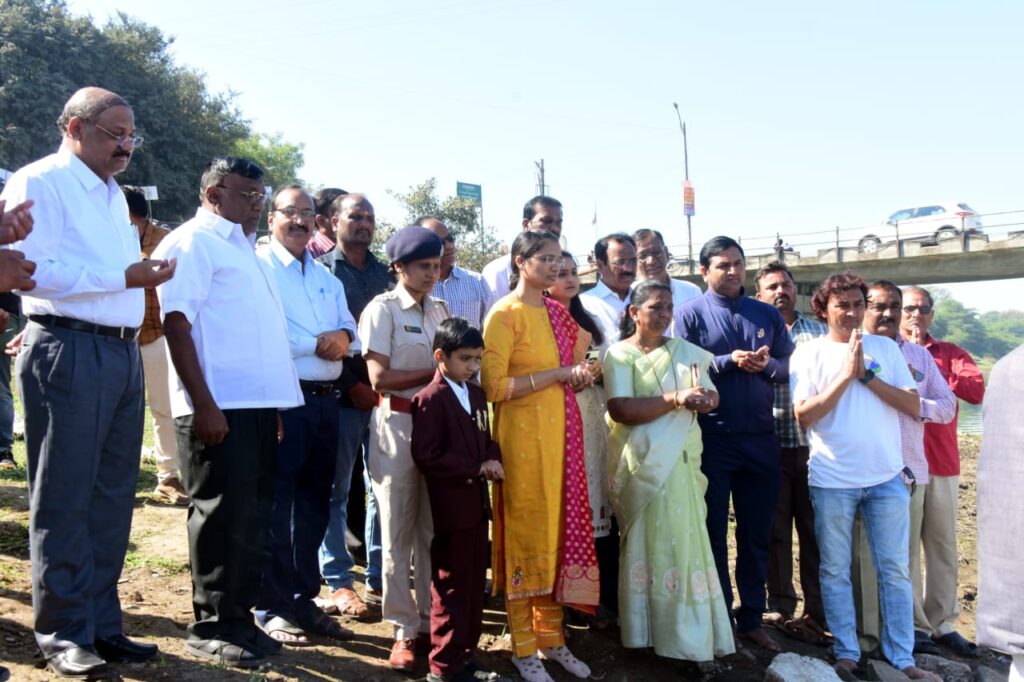 गोदामाई प्रतिष्ठानच्या वतीने गोदावरी नदी पात्राची २०१ आठवडे स्वच्छता पूर्तीच्या कार्यक्रम प्रसंगी प्रमुख पाहुणे म्हणून जिल्हावन अधिकारी सुवर्णा माने, कोपरगाव पंचायत समितीचे गटविकास अधिकारी सचिन सूर्यवंशी, प्रसिद्ध सिने अभिनेता किरण भालेराव, कोपरगावचे माजी नगराध्यक्ष पद्मकांत कुदळे, के.जे सोमैय्या महाविद्यालयाचे प्राचार्य डॉ. बी एस यादव, एस एस जी एम महाविद्यालयाचे प्राचार्य डॉ. रमेश सानप, श्री साईबाबा संस्थानचे माजी विश्वस्त सचिन तांबे, व्यापारी महासंघाचे उपाध्यक्ष नारायण अग्रवाल, नमामी गोदानासिक चे राजेश पंडित, कन्या विद्यालयाचे मुख्याध्यापिका मंजुषा सुरवसे, एस जी विद्यालयाचे मुख्याध्यापक मकरंद कोराहळकर, उदगीर नगरपालिकेचे अधिकारी महारुद्र गालट, पीपल्स बँकेचे संचालक सत्येंन मुंदडा यांच्यासह विजय सांगळे, अनिल भाबड, सौरभ मुंगसे, निलेश पाटील, सोमनाथ पाटील, सुनीता इंगळे, प्रदीप गुरळी, अशोक नरोडे, बळीराम साठे, गिरमकर सर, आबासाहेब देव, सृष्टी देव, सुधीर डागा, नितीन पोळ, तुषार विध्वंस, मनोज साठे, बंटी पगारे, सेवानिवृत्त मुख्याध्यापक सुरेश कातकडे, माजी जिल्हा परिषद सदस्य केशवराव भवर, दिलीप सारंगधर, प्रज्वल ढाकणे, वैष्णवी ढाकणे यांच्यासह के.जे सोमय्या, एस एस जी एम, संजीवनी इंजिनिअरिंग, कन्या विद्यालय आदी महाविद्यालयातील एन.सी.सी व एन. एन.एस चे विद्यार्थी व विद्यार्थिनी तसेच शिक्षक मोठ्या संख्येने उपस्थित होते.या प्रसंगी जिल्हा वनाधिकारी सोनवणे यांनी पुढे बोलताना सांगितले की, कोपरगावातील गोदामाई प्रतिष्ठान तर्फे राबवत असलेला गोदावरी नदी स्वच्छता उपक्रम अतिशय सुंदर असून ढाकणे व त्यांच्या सर्व टीमचा सर्वांनी आदर्श घ्यावा असे बोलून सोनवणे यांनी गोदामाई प्रतिष्ठान करीता सामाजिक उपक्रम राबविण्यासाठी सर्वोत्तपरी मदत करण्याचे आश्वासन देत शुभेच्छा दिल्या.या प्रसंगी पंचायत समितीचे गटविकास अधिकारी सूर्यवंशी यांनी बोलताना सांगितले की, ढाकणे व त्यांच्या सर्व टीमचे गोदावरी स्वच्छता अभियानाचे सातत्य एक अभिमानास्पद बाब असून येणाऱ्या काळात गोदामाई प्रतिष्ठान कोपरगाव तालुक्यातील २६ गावातून वाहणाऱ्या गोदावरी नदीकाठच्या गावातील नागरिकांना मार्गदर्शन करत गोदावरी नदी स्वच्छ ठेवण्यासाठी प्रयत्न करावे या साठी शासन देखील त्यांना सहकार्य करेल असे आश्वासन सूर्यवंशी यांनी देत सर्व टीम ला शुभेच्छा दिल्या.सिने अभिनेता किरण भालेराव यांनी आदिनाथ ढाकणे यांच्या उपक्रमाचे कौतुक करून त्यांना शुभेच्छा देत त्यांचा हा उपक्रम एक मुखी न राहता सर्वांनी कृतीशील पणे यात सहभागी व्हावे हे आपल्या प्रत्येकाचं कर्तव्य आहे नागरिक म्हणून आपण स्वतः नदी प्रदूषित कर