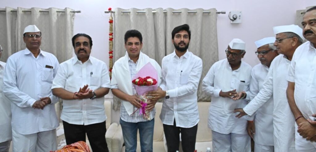 नाशिक पदवीधर मतदार संघाचे अपक्ष आमदार सत्यजित सुधीर तांबे यांनी नुकतीच संजीवनी उद्योग समुहास भेट दिली त्याबददल त्यांचा जिल्हा बँकेचे संचालक विवेकभैय्या कोल्हे यांच्या हस्ते, संजीवनी उद्योग समूहाचे अध्यक्ष बिपिनदादा कोल्हे यांच्या प्रमुख उपस्थितीत सत्कार करण्यांत आला. प्रारंभी जिल्हा बँकेचे संचालक विवेकभैय्या कोल्हे यांनी उपस्थितांचे स्वागत केले. संजीवनी उद्योग समुहाचे अध्यक्ष बिपीनदादा कोल्हे याप्रसंगी बोलतांना म्हणाले की, नाशिक पदवीधर मतदार संघाच्या निवडणुकीत अहमदनगर जिल्हयाचे युवा नेतृत्व सत्यजीत तांबे यांनी अतिशय कौशल्यपूर्ण अंमलबजावणीतुन निवडणुक हाताळून मोठी विजयश्री खेचुन आणली त्याबददल त्यांचे कौतुक करावे तेव्हढे थोडेच आहे. वडील तत्कालीन आमदार डॉ सुधीर तांबे यांना विधीमंडळ कामकाजाचा तीन पंचवार्षीक निवडणुकीचा अनुभव आहे. नाशिक पदवीधर मतदार संघातील शिक्षकांच्या प्रलंबित मागण्यांची सोडवणुक करण्यासाठी डॉ सुधीर तांबे यांनी केलेले काम सर्वांनाच प्रेरणादायी आहे. नवनिर्वाचित आमदार सत्यजीत यांनी वडीलांच्या संस्कारातुन व त्यांच्या अनुभवातुन नाशिक पदवीधर मतदार संघातील उर्वरित शिक्षकांच्या समस्या प्रामुख्याने मार्गी लावून यशस्वीपणे काम करावे. याप्रसंगी ज्येष्ठ नेते दत्तात्रय कोल्हे, सहकारमहर्षी शंकरराव कोल्हे सहकारी साखर कारखान्यांचे उपाध्यक्ष रमेश घोडेराव, संचालक विश्वासराव महाले, आप्पासाहेब दवंगे, निवृत्ती कोळपे, त्रंबकराव सरोदे, बापूसाहेब बारहाते, साईनाथराव रोहमारे, भाजपाचे जिल्हा उपाध्यक्ष शरद थोरात, तालुकाध्यक्ष साहेबराव रोहोम, संजीवनी पतसंस्थेचे अध्यक्ष प्रदिप नवले, माजी सभापती मच्छिंद्र टेके, मच्छिंद्र केकाण, शिवाजीराव वक्ते, शेतकरी सहकारी संघाचे नवनिर्वाचित अध्यक्ष अंबादास देवकर, उपाध्यक्ष बाजीराव वेणुनाथ मांजरे, माजी अध्यक्ष संभाजीराव गावंड, माजी उपाध्यक्ष विलासराव कुलकर्णी, माजी पंचायत समिती सदस्य बबनराव निकम, नानासाहेब थोरात, माजी संचालक राजेंद्र भाकरे, संग्राम देशमुख, अक्षय घुले यांच्यासह विविध संस्थांचे आजी माजी पदाधिकारी कार्यकर्ते, शेतकरी सहकारी संघाचे नवनिर्वाचित सर्व संचालक, सभासद शेतकरी, उपस्थित होते. शेवटी संचालक विश्वासराव महाले यांनी आभार मानले. नाशिक पदवीधर मतदार संघाचे अपक्ष आमदार सत्यजित सुधीर तांबे यांनी नुकतीच संजीवनी उद्योग समुहास भेट दिली त्याबददल त्यांचा जिल्हा बँकेचे संचालक विवेकभैय्या कोल्हे यांच्या हस्ते सत्कार करण्यात आला, बिपिनदादा कोल्हे यावेळी उपस्थित होते.