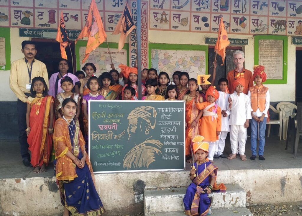 शिवजयंती २०२3 निमित्ताने जि.प.प्रा.शाळा,गिरमेवस्ती(जे.कुं). हिन्दवी स्वराज्याचे संस्थापक छत्रपती शिवाजी महाराज जयंती निमित्त गिरमेवस्ती शाळेत विद्यार्थ्यानी बाल शिवाजी,जिजाऊ,मावळे अशा वेशभूषा साकारुन शालेय परिसर शिवभक्तिमय केला.विद्यार्थ्यानी आपल्या भाषणातून शिवरायांविषयी भावना व्यक्त करुण शिवरायांचा जयघोष केला.विद्यार्थिनीनी शिवरायांच्या गितांवर सुंदर नृत्य सादर केले. यावेळी विद्यार्थ्यानी महाराष्ट्राचे राज्यगीत ‘जय जय महाराष्ट्र माझा ‘ गायिले. उपशिक्षक सुदाम साळुंके यांनी शिवरायांच्या जीवनाबद्दल मनोगत व्यक्त करताना ‘आपणही जीवनात शिवरायांचा आदर्श डोळ्यासमोर ठेऊन कार्य केले पाहिजे ‘ असे सांगितले.उपशिक्षक अनुज ढुमणे यांनी शिवरायांचे फलकावर आकर्षक चित्र रेखाटन करुण मनोगत व्यक्त केले.