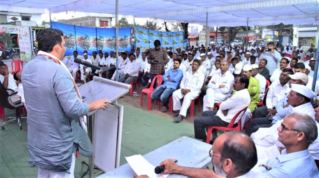 राज्य मार्ग-७ वरील शहाजापूर सुरेगाव-वेळापूर-कारवाडी-चासनळी ते जिल्हा हद्द (सात मोऱ्या) या १० कोटीच्या रस्त्याच्या कामाचे भूमिपूजन प्रसंगी बोलतांना आ.आशुतोष काळे.