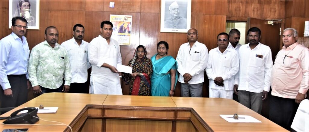 ओरीएंटल इंशुरन्स कंपनीने त्या सर्व कागदपत्रांची पडताळणी करून मयत सभासद स्व.गोविंद पन्हाळे यांच्या वारसांना पॉलिसिपोटी ४ लाख रुपयांची जनता व्यक्तिगत दुर्घटना विमा रक्कम मंजूर केली.त्या रक्कमेचा धनादेश नुकताच मयत गोविंद पन्हाळे यांच्या वारस त्यांच्या पत्नी श्रीमती मंगल गोविंद पन्हाळे यांना आमदार आशुतोष काळे यांच्या हस्ते देण्यात आला. यावेळी संस्थेचे चेअरमन देवेंद्र रोहमारे, व्हा. चेअरमन रावसाहेब चौधरी, संचालक, अनिल महाले, महेंद्र काळे, सुदाम वाबळे, व्यंकटेश बारहाते, बन्सी निकम, सौ. मेघा कडवे, वीरेंद्र शिंदे, ज्ञानेश्वर हाळनोर, मॅनेजर मंगेश देशमुख आदी मान्यवर उपस्थित होते.पद्मविभुषण डॉ. शरदचंद्रजी पवार पतसंस्था मयताच्या वारसास ४ लाखाचा धनादेश देतांना आ. आशुतोष काळे.