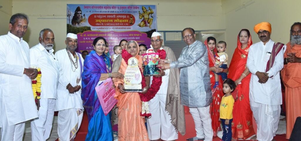 प्रसंगी राघवेश्वरानंदगिरी महाराज आणि समता परिवाराचे संस्थापक ओमप्रकाश दादाप्पा तथा काका कोयटे यांच्या हस्ते पांडुरंग सावली सभा मंडपासाठी ज्यांनी दातृत्व बहाल केले असे समता पतसंस्थेचे संचालक श्री.कांतीलाल जोशी यांचा सत्कार करण्यात आला.कोपरगाव शहरातील ज्येष्ठ नागरिक संघाचे श्री.विजय बंब पदाधिकरी आणि निवारा परिसरातील श्रेष्ठ नागरिक मित्र मंडळाच्या वतीने अध्यक्षा श्रीमती पुष्पलता सुतार यांनी ही श्री.कांतीलाल जोशी यांच्या दातृत्वाबद्दल सत्कार करत सन्मान केला.तसेच ९६ दिवसात पायी नर्मदा परिक्रमा पूर्ण केल्याबद्दल निवारा परिसरातील ह.भ.प. बाळकृष्ण महाराज सुरासे व श्री. बापूसाहेब इनामके यांचे संतपुजन करत तसेच शैक्षणिक क्षेत्रात विद्यादानाचे कार्य प्रामाणिकपणे करून निवारा परिसरातील १८ सेवानिवृत्त शिक्षक आणि विद्यादानाचे काम करताना स्वतःतील कला – गुणांद्वारा राज्यस्तरीय पुरस्कार मिळविणाऱ्या ४ शिक्षक आणि निवारा परिसरातील ज्येष्ठ नागरिक म्हणून वयाची ८४ वर्ष पूर्ण करणारे श्री.जगन्नाथ बैरागी आणि त्यांच्या पत्नी सौ.सुमन बैरागी यांचा भव्य सत्कार निवारावासियांचे मार्गदर्शक काका कोयटे व महादेव मंदिर व्यवस्थापन समिती अध्यक्षा सौ.सुहासिनी ओमप्रकाश कोयटे यांच्या हस्ते करून सन्मान करण्यात आला. तसेच ह.भ.प.विकास महाराज गायकवाड यांनी किर्तन रुपी सुश्राव्य वाणीतून ज्ञान आणि भक्तीचा मेळ घालत निवारावासियांच्या धार्मिक भावना वाढविल्या.ज्ञान आणि भक्तीचा मेळ घालताना ह.भ.प.विकास महाराज गायकवाड म्हणाले की, निवारा परिसरात खूप कार्यक्रम होत असतात, पण त्या कार्यक्रमांना अविस्मरणीय कसे करायचे हे निवारावासियांकडूनच शिकले पाहिजे.निवारावासियांनी संत – महंतांच्या उपस्थितीत हा लोकार्पण सोहळा अविस्मरणीय बनविला आहे. महाराष्ट्रातील सहकाराला समृद्ध करणारे व निवारावासियांचे मार्गदर्शक काका कोयटे यांच्या दातृत्वाचे कौतुक करावे तेवढे कमीच आहे. समाजात दान करणारे खूप असतात, पण दान करण्यासाठी जे पात्र असतात त्यांच्याकडूनच दान होते.