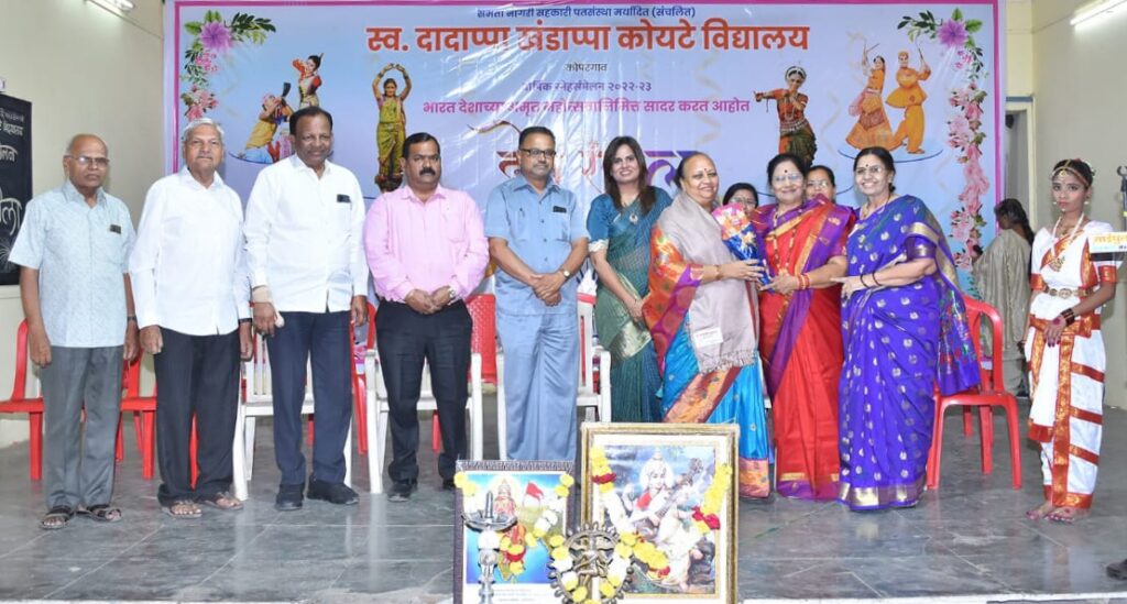 समता चॅरिटेबल ट्रस्ट संचलित स्व. दादाप्पा खंडाप्पा कोयटे विद्यालयात सेवानिवृत्त मुख्याध्यापिका सौ.सुनिता ससाणे, मुख्याध्यापक श्री.माधव पोटे, प्रा.यशवंत आंबेडकर, कोयटे विद्यालयाचे संस्थापक ओमप्रकाश दादाप्पा तथा काका कोयटे, समता इंटरनॅशनल स्कूलच्या मॅनेजिंग ट्रस्टी सौ.स्वाती संदीप कोयटे, श्री.रंगनाथ खानापूरे, श्री.सुरेंद्र व्यास, सौ.मीना व्यास, सौ.जोत्सना पटेल,कोयटे विद्यालयाच्या अध्यक्षा सौ.सुहासिनी कोयटे, शाळा व्यवस्थापन समिती सदस्य, पालक वर्ग यांच्या उपस्थितीत भारत देशाच्या अमृत महोत्सवानिमित्त भारत देशाचे विविधतेतून एकात्मतेचे दर्शन घडविणारे वार्षिक स्नेहसंमेलन २०२२ – २३ आणि वार्षिक बक्षिस वितरण समारंभ पार पडला. कोयटे विद्यालयाचे अध्यक्षा सौ.सुहासिनी ओमप्रकाश कोयटे यांच्या हस्ते कार्यक्रमाच्या प्रमुख पाहुण्या सेवानिवृत्त मुख्याध्यापिका सौ.सुनिता ससाणे यांचा सत्कार करण्यात आला तर सेवानिवृत्त मुख्याध्यापक माधव पोटे व कार्यक्रमाचे अध्यक्ष यशवंत आंबेडकर यांचा सत्कार विद्यालयाचे संस्थापक काका कोयटे यांच्या हस्ते करण्यात आला.कार्यक्रमाचे अध्यक्ष स्थान यशवंत आंबेडकर यांनी भूषविले. कार्यक्रमाचे प्रमुख पाहुणे माधव पोटे, अध्यक्ष यशवंत आंबेडकर यांनी ही मनोगतातून चिमुकल्यांनी सादर केलेल्या नृत्याविष्काराचे कौतुक केले.