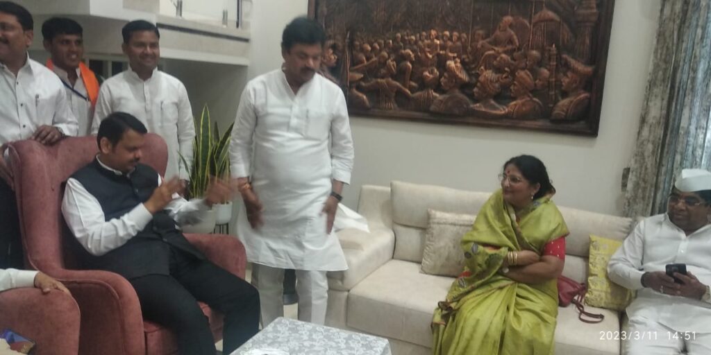 उपमुख्यमंत्री देवेंद्र फडणवीस विविध कार्यक्रमांसाठी शनिवारी कर्जत (जि. अहमदनगर) दौऱ्यावर आले होते. याप्रसंगी भाजपच्या प्रदेश सचिव तथा माजी आमदार स्नेहलताताई कोल्हे यांनी फडणवीस यांचे स्वागत केले. कोपरगाव विधानसभा मतदारसंघातील विविध कामांसाठी यंदाच्या अर्थसंकल्पात साडेपाचशे कोटी रुपयांहून अधिक निधीची तरतूद केल्याबद्दल स्नेहलताताई कोल्हे यांनी यावेळी फडणवीस यांचा सत्कार करून मतदारसंघातील जनतेच्या वतीने त्यांना धन्यवाद दिले.