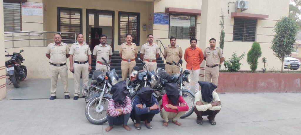 कोपरगाव शहरासह परिसरातील मोटार सायकल चोरणाऱ्या ४ चोरांना ३ मोटार सायकल सह मोठ्या शिताफीने जेरबंद केले असल्याची माहिती कोपरगाव शहर पोलिस ठाण्याचे निरीक्षक रामराव ढिकले यांनी दिली
