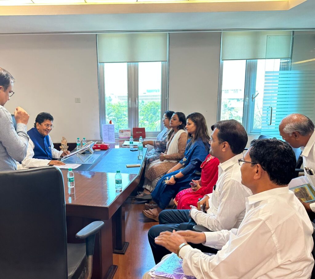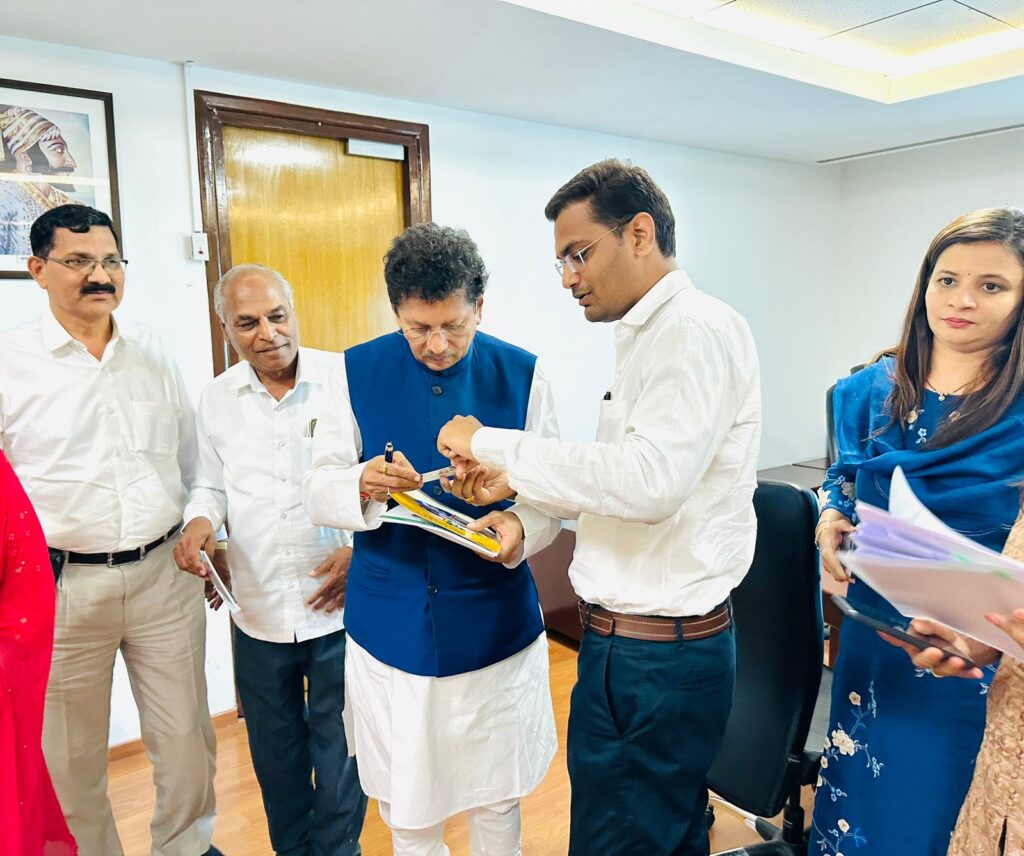 अहमदनगर जिल्ह्यातील खासगी सीबीएसई व एसएससी बोर्डच्या शाळांच्या अनेक समस्यांबाबत जेऊर कुंभारी येथील रेनबो इंटरनॅशनल स्कूलचे कार्यकारी संचालक आकाश नागरे यांनी शिक्षणमंत्री दिपक केसरकर यांची मंगळवार, दि. २१ मार्च रोजी मुंबई येथील मंत्रालयातील कार्यालयात भेट घेतली.