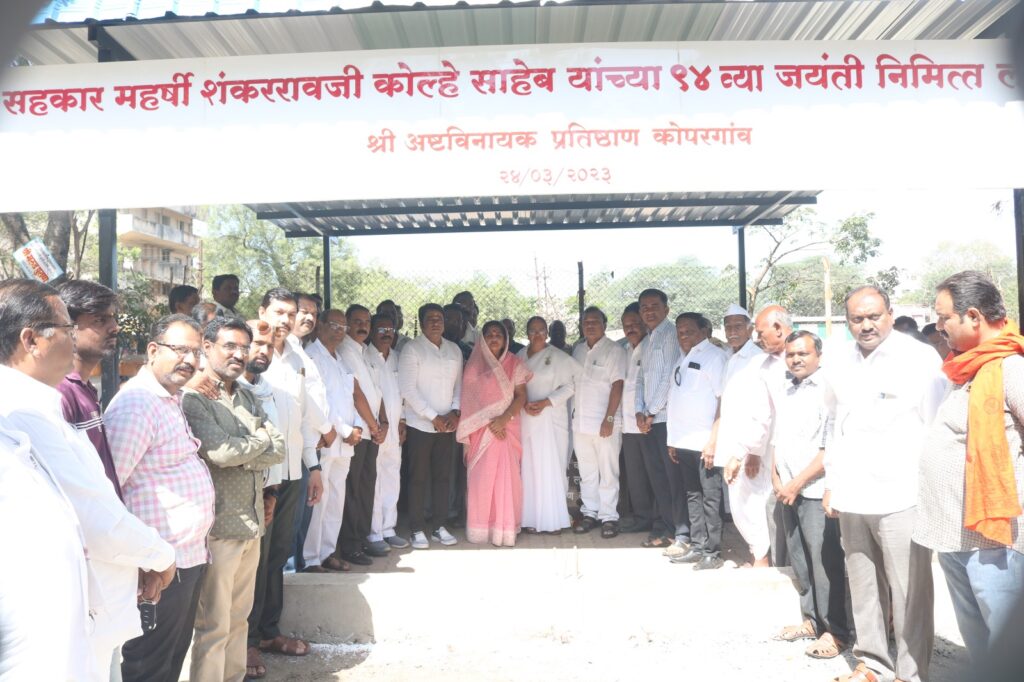 कोपरगाव अमरधाम येथे संजीवनी उद्योग समूह व अष्टविनायक मित्र मंडळ यांच्या माध्यमातून प्रवचनकार बैठक कक्ष,विसावा ओटा,अस्थीकलश ठेवण्याचे कपाट यांचे लोकार्पण मा.आ.सौ.स्नेहलताताई कोल्हे व प्रजापिता ब्रम्हकुमारी कोपरगाव केंद्राच्या प.पूज्य सरलादीदी यांच्या हस्ते विविध मान्यवरांच्या उपस्थितीत करण्यात आले.