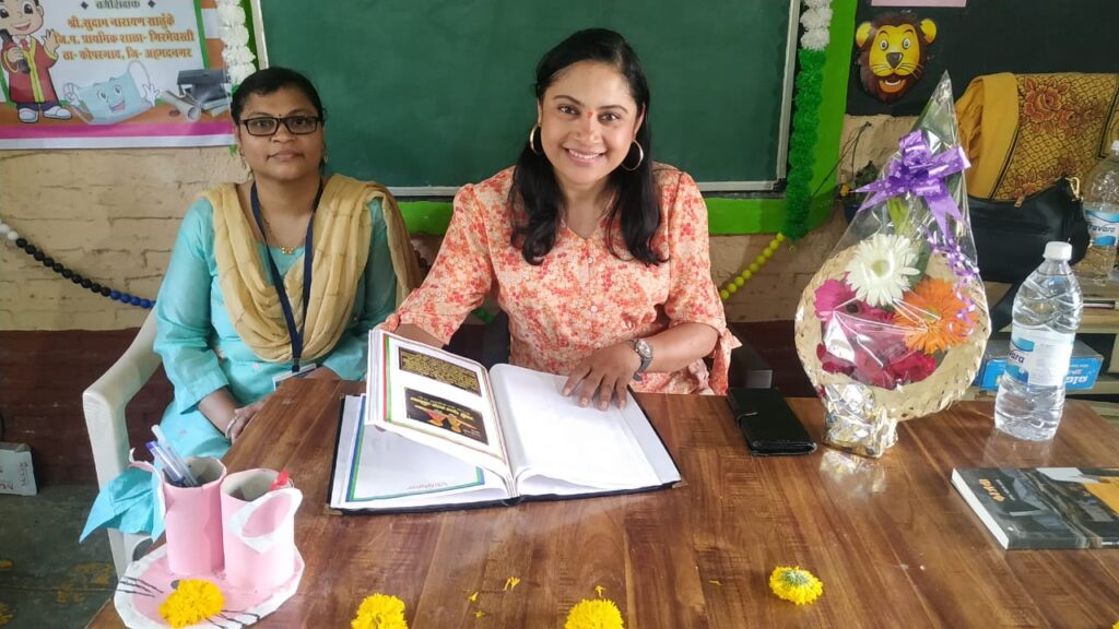 कोपरगाव तालुक्यात जेऊर कुंभारी येथील जि.प.प्राथमिक शाळा गिरमेवस्ती शाळेत गटशिक्षणाधिकारी शबाना शेख यांच्या मार्गदर्शनाखाली सुप्रसिद्ध लेखिका, अभिनेत्री, चित्रकार श्रीम. अंजलीताई अत्रे यांनी लेखिका आपल्या भेटीला या त्यांच्या उपक्रमांतर्गत गिरमेवस्ती शाळेस भेट दिली त्यांना पाहून विद्यार्थ्यांचा आनंद गगनात मावेनासा झाला. विद्यार्थी व शिक्षकांनी उत्साहाने त्यांचे स्वागत केले.अंजली ताईंनी विद्यार्थ्यांशी हितगुज केले व मिठाचा शोध ही कथा सांगून विद्यार्थ्यांच्या प्रश्नांना उत्तरे दिली.’आपण आपले छंद जोपासायला हवेत तसेच नवनवीन गोष्टी आत्मसात कराव्यात ‘असे त्यांनी मनोगतातून सांगितले. तसेच माझे प्रगतीपुस्तक हा उपक्रम मुलांनी राबवण्यासाठी मुलांना प्रोत्साहित केले. यावेळी महर्षी शंकरराव कोल्हे कारखान्याचे संचालक बाळासाहेब वक्ते यांनी या अनोख्या उपक्रमाचे कौतुक केले. तसेच मुलांनी आपले छंद लहान वयातच जोपासून ते पूर्ण करण्यासाठी आता पासून प्रयत्न करण्याची गरज आहे. अनुज ढुमणे यांनी अंजली ताईंचे फलकावर हुबेहूब रेखाटलेले चित्राचे अंजलीताईंनी कौतुक केले.कार्यक्रमाचे सूत्रसंचालन सुदाम साळुंके यांनी केले.आभार मुख्याध्यापिका प्रियंका जोशी यांनी मानले.