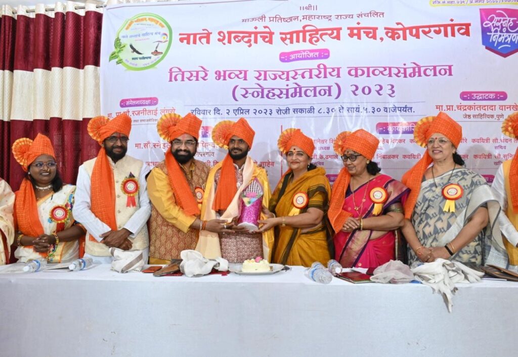 कोपरगाव येथे नाते शब्दांचे साहित्य मंचच्या वतीने तिसरे राज्यस्तरीय काव्य संमेलन रविवारी (२ एप्रिल) आयोजित केले होते. या कविसंमेलनात प्रमुख अतिथी म्हणून स्नेहलताताई कोल्हे बोलत होत्या. ज्येष्ठ साहित्यिक प्रा. रजनी लुंगसे (धुळे) यांनी या काव्यसंमेलनाचे अध्यक्षस्थान भूषवले, तर संमेलनाचे उद्घाटन ज्येष्ठ साहित्यिक प्रा. चंद्रकांत वानखेडे (पुणे) यांच्या हस्ते झाले. कोपरगावच्या माजी नगराध्यक्षा ऐश्वर्यालक्ष्मी संजय सातभाई यांची प्रमुख अतिथी म्हणून उपस्थिती होती. यावेळी नाते शब्दांचे साहित्य मंचचे संस्थापक अध्यक्ष ज्ञानेश्वर शिंदे, उपाध्यक्ष बाळासाहेब देवकर, सचिव आकाश वाकचौरे, सौ. चंदन तरवडे, सहसचिव डॉ. जी. के. ढमाले, कार्याध्यक्ष पंडित निंबाळकर,दिनेश चव्हाण, शबाना तांबोळी, संयोजक विलास नवसागरे, नंदकिशोर लांडगे, कवयित्री श्रावणी शिंदे, राजश्री लोंढे, सुरेखा बिबवे, उज्ज्वला कोल्हे, रत्नप्रभा दवंगे, बाबासाहेब दाभाडे, नारायण सोनवणे आदींसह पुणे, नगर, नाशिक, शिर्डी, धुळे, लातूर, छत्रपती संभाजीनगर, जळगाव, रायगड, सातारा, परभणी, भंडारा आदी राज्याच्या विविध भागातून आलेले कवी मोठ्या संख्येने उपस्थित होते.