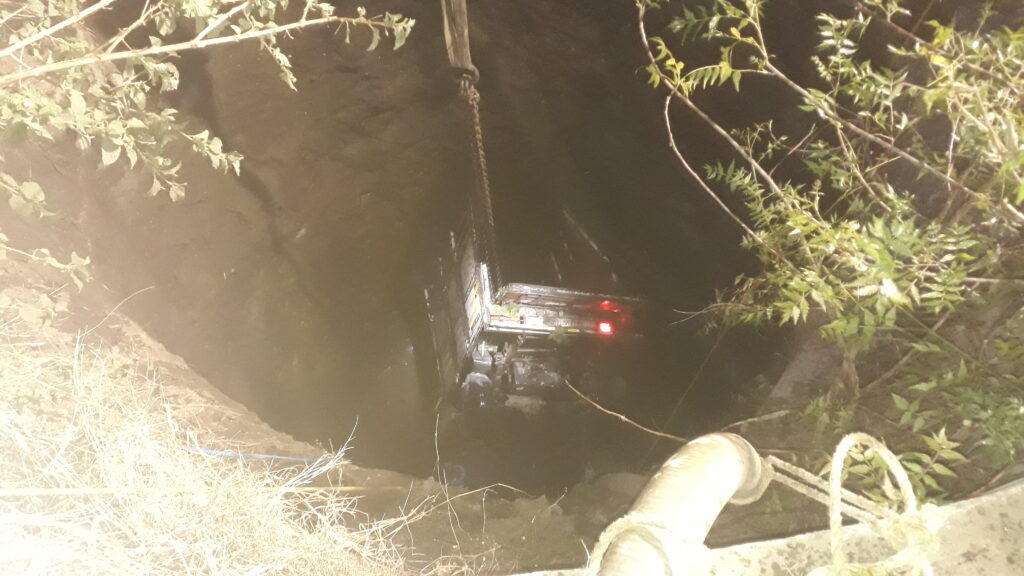 ब्रेक फेल झाल्यामुळे रस्त्याच्या कडेला असलेल्या विहिरीत पडून भिषण अपघात झाला. चालकाच्या लक्षात आल्यावर त्याने वाहनातून उडी मारली मात्र त्याचा मदतनीस गाडी होता.यात मदतणीसाचा मृत्यू झाल्याची अंदाज असून अपघाताची माहिती मिळताच