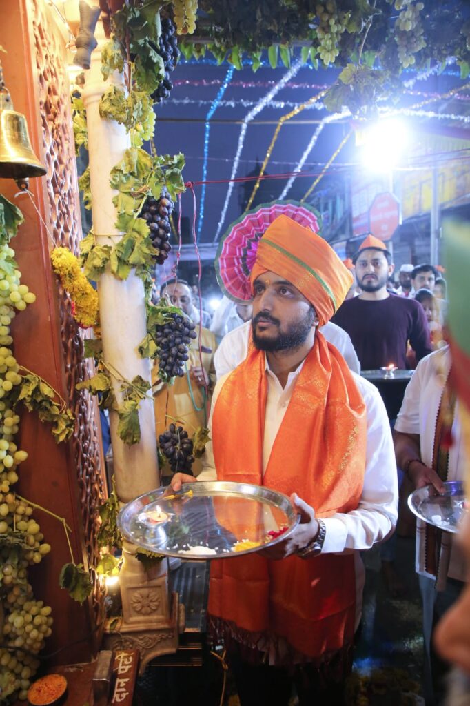 चैत्र महोत्सवानिमित्त श्री सप्तश्रृंगी माता मंदिराला ४०० किलो द्राक्षांची सुंदर आरास करण्यात आली होती. रविवारी रात्री श्री सप्तश्रृंगी मातेचे प. पू. रमेशगिरी महाराज, ह.भ.प. गणपतराव लोहाटे महाराज आणि युवा नेते विवेकभैय्या कोल्हे यांच्या हस्ते विधिवत पूजन करून महाआरती करण्यात आली. यावेळी विवेकभैय्या कोल्हे यांनी श्री सप्तश्रृंगी मातेचे मनोभावे दर्शन घेतले. तसेच प. पू. रमेशगिरी महाराज, ह.भ.प. गणपतराव लोहाटे महाराज यांचे आशीर्वाद घेतले. महाआरतीनंतर महाप्रसादाचा (भंडारा) कार्यक्रम झाला. विवेकभैय्या कोल्हे यांनी उपस्थित भाविक-भक्तांना महाप्रसादाचे वाटप करून त्यांच्यासमवेत महाप्रसादाचा लाभ घेतला.