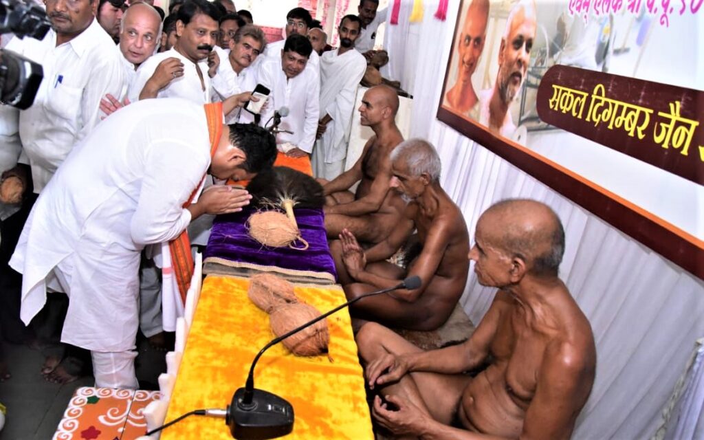 पाच वर्षानंतर बुधवार (दि.१९) रोजी संत शिरोमणी प.पु.१०८ आचार्य श्री विद्यासागरजी महाराज यांचे परम शिष्य असलेल्या जैन मुनींचे कोपरगावात आगमन झाले. यावेळी आ. आशुतोष काळे यांनी त्यांचे कोपरगावकरांच्या वतीने स्वागत केले व पूजन करून आशीर्वाद घेतले.संत शिरोमणी प.पु.१०८ आचार्य श्री विद्यासागरजी महाराज यांचे परम शिष्य संत श्री परमपूज्य १०८ श्री अक्षयसागरजी महाराज, परमपूज्य १०८ श्री नेमीसागरजी महाराज, परमपूज्य १०८ श्री शैलसागरजी महाराज, परमपूज्य १०८ श्री अचलसागरजी महाराज व ऐलक परमपूज्य १०५ श्री उपशमसागरजी महाराज यांचे बुधवार रोजी कोपरगावनगरीत आगमन झाले. यावेळी असंख्य जैन समाज बांधव व जैन मुनी समवेत आ. आशुतोष काळे यांनी टाकळी नाका ते कोपरगाव शहरातील महावीर भवन पर्यंत पायी प्रवास केला. सर्व जैन मुनींचे महावीर भवन या ठिकाणी आ. आशुतोष काळे यांनी आरती करून मनोभावे पूजन केले.यावेळी आ.आशुतोष काळे म्हणाले की, जैन मुनींचे चरण स्पर्श कोपरगावच्या भूमीला होत आहे हे कोपरगावकरांचे भाग्य आहे. कोपरगावकर नेहमीच सर्व धार्मिक कार्यक्रमात मोठ्या उत्साहाने सहभागी होतात. त्यामुळे यावर्षी होणारा चातुर्मास कार्यक्रम कोपरगाव मध्ये घेवून कोपरगावकरांना सेवा करण्याची संधी द्यावी अशी विनंती कोपरगावकरांच्या वतीने व समस्त जैन समाजाच्या वतीने आ. आशुतोष काळे यांनी जैन मुनींकडे केली.यावेळी समाजाचे पंच अशोक पापडीवाल, महावीर दगडे तसेच सर्व ट्रस्टी, अजित लोहाडे, कैलास ठोळे, दिलीप अजमेरे, नितीन कासलीवाल, अजित काले, सी.डी. ठोळे, सचिन ठोळे, राजाभाऊ अजमेरे, सुनील बोरा, राजाभाऊ फुलफगर, सचिन अजमेरे, अतुल काले, महावीर काले, परेश पांडे, विशाल ठोळे, योगेश गंगवाल, प्रीतम गंगवाल, नीरज कासलीवाल, सुयोग ढोले, अशोक गंगवाल, राजाभाऊ गंगवाल, गोकुळ गंगवाल, पियुष गंगवाल, सुमित लोहाडे, संतोष गंगवाल, आनंद काले, डॉ. मयुर गंगवाल, महात्मा गांधी जिल्हा प्रदर्शन चॅरिटेबल ट्रस्टचे सचिव धरमचंद बागरेचा, राष्ट्रवादी काँग्रेसचे शहराध्यक्ष सुनील गंगूले, माजी नगरसेवक गटनेते विरेन बोरावके, मंदार पहाडे, रमेश गवळी, राजेंद्र वाकचौरे, कलविंदरसिंग डडीयाल, अशोक आव्हाटे, राजेंद्र खैरनार, शैलेश साबळे, ऋषीकेश खैरनार, अक्षय आंग्रे, किरण बागुल,राजेंद्र आभाळे, विकी जोशी, रामदास केकाण, तेजस साबळे, एकनाथ गंगूले, आकाश गायकवाड, दिनेश पवार, गणेश बोरुडे, सचिन गवारे, मनोज नरोडे, रोशन शेजवळ, दिलीप पोटे, सिद्धेश होले, दादा पोटे, अमोल वाघडकर, रितेश राऊत, सोमा शिंदे, तुषार चिकणे, समर्थ दीक्षित आदींसह जैन बांधव उपस्थित होते.