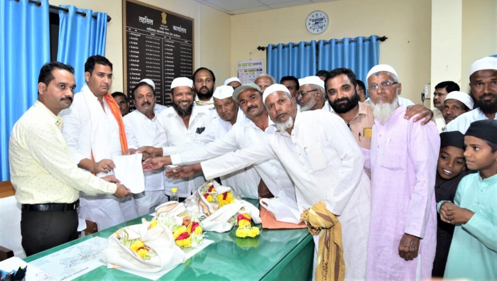 मागील अनेक वर्षापासून प्रलंबित असलेल्या धारणगाव, कुंभारीच्या मुस्लीम बांधवांची प्रमुख मागणी असलेला दफन भूमीचा प्रश्न प्रलंबित होता. त्याबाबत धारणगाव, कुंभारीच्या मुस्लीम बांधवांनी आ. आशुतोष काळे यांच्याकडे आपली अडचण मांडून हा प्रश्न सोडवावा अशी मागणी केली होती. त्याबाबत आ. आशुतोष काळे यांनी पुढाकार घेवून शासनदरबारी केलेल्या पाठपुराव्यातून हा प्रश्न मार्गी लागला असून धारणगाव, कुंभारीच्या मुस्लीम बांधवांनी आ. आशुतोष काळे यांचे आभार मानले आहे.मागील साडे तीन वर्षाच्या कार्यकाळात आ.आशुतोष काळे यांनी विकासाच्या प्रश्नांबरोबरच सर्व समाजाला समसमान न्याय देवून सर्वच समाजाचे महत्वाचे सामाजिक व धार्मिक प्रश्न मार्गी लावले असून मुस्लीम समाजाचे देखील दफनभूमी व कब्रस्तानचे प्रश्न सोडविले आहे. त्यामुळे धारणगाव, कुंभारीच्या मुस्लीम बांधवांनी देखील आ. आशुतोष काळे यांच्याकडे दफनभूमीचा प्रश्न मांडला असता हा प्रश्न देखील आ. आशुतोष काळे यांनी सोडविला आहे. त्याबाबतचे दफनभूमी मंजुरी आदेशांचे पत्र आ. आशुतोष काळे यांनी नुकतेच धारणगाव, कुंभारीच्या मुस्लीम बांधवांना सुपूर्त केले.माजी आमदार अशोकराव काळे यांच्या प्रमाणेच आ.आशुतोष काळे यांनी देखील मतदार संघातील मस्जिद, दफनभूमीसाठी मोठा निधी दिला आहे. दोन दिवसापूर्वी झालेल्या पवित्र रमजानच्या दिवशी देखील कोपरगाव शहरातील अक्सा मस्जिदमध्ये २५ लक्ष रुपये निधीतून करण्यात येणाऱ्या सभामंडप बांधकाम व मस्जिद सुशोभीकरण कामाचे भूमिपूजन करण्यात आले आहे. त्याबरोबरच आमचा देखील मागील अनेक वर्षापासुनचा अत्यंत जिव्हाळ्याचा प्रश्न आ.आशुतोष काळे यांनी अल्पकाळात सोडवून मुस्लीम बांधवांची मोठी अडचण व होणारी गैरसोय दूर केली आहे. त्यामुळे धारणगाव, कुंभारीच्या मुस्लीम बांधवांसह मतदार संघातील सर्व मुस्लीम बांधव नेहमीच आ. आशुतोष काळे यांच्या पाठीशी खंबीरपणे उभे राहतील अशा भावना यावेळी मुस्लीम बांधवांनी व्यक्त केल्या.धारणगाव, कुंभारी दफनभूमी मंजुरी आदेश मुस्लीम बांधवांना देतांना आ. आशुतोष काळे समवेत तहसीलदार विजय बोरुडे.