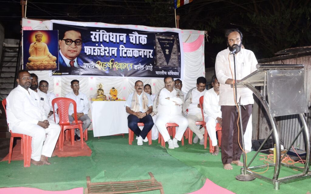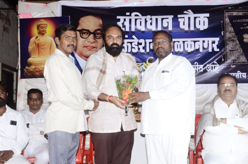 संविधान चौक फाउंडेशन च्या वतीने दरवर्षी मोठ्या प्रमाणात डॉक्टर बाबासाहेब आंबेडकर यांची जयंती व बुद्ध जयंती साजरी केली जाते. या फाउंडेशन तर्फे गोरगरीब मुलांना शाळेसाठी वह्या ,पुस्तक , पेन पाटी तसेच ड्रेसचेही वाटप करण्यात येते. ह्या फाउंडेशनने काही मुलेही जी अत्यंत गरीब आहे ,परंतु त्यांना शिकायची इच्छा आहे अशांना दत्तक घेऊन त्यांची शिक्षणाची सोय ते करत आहेत .अशा या फाउंडेशनचे अध्यक्ष नितीन जी शिंदे व त्यांचे सहकारी ह्या सर्वांचे माजी नगराध्यक्ष मंगेश पाटील यांनी या स्तुत्य अश्या उपक्रमाचे व सदस्यांचे अभिनंदन केले व त्यांच्या पुढील वाटचालीस शुभेच्छा दिल्या. यावेळी या कार्यक्रमाचे सूत्रसंचालन पत्रकार बिपिन जी गायकवाड यांनी केले. यावेळी व्यासपीठावर बौद्धाचार्य नानासाहेब जगताप , ॲड. अजित जी झोडगे , साहेबरावजी कोपरे, मार्केट कमिटीचे सचिव नानासाहेब रणशुर, जितेंद्र जी साळवे , मेजर मारुती कोपरे , माजी नगरसेवक संजय जी कांबळे , शिवाजी चाबुकस्वार ,अशोक कोपरे ,सागर कोपरे ,सचिन शिंदे ,विशाल शिंदे पप्पू बागुल ,बाला पवार, जीवन वाघमारे ,गोरख इंगळे तसेच रेखाताई चाबूकस्वार ,लक्ष्मीबाई वाघमारे ,भारतीताई शिंदे त्यांच्यासह अनेक मान्यवर व महिला माता भगिनी , बाळ गोपाळ मुली मुली मोठ्या प्रमाणावर उपस्थित होते .व्यासपीठावरील मान्यवरांनी आपले मनोगत यावेळेस व्यक्त केले व या फाउंडेशनच्या चांगल्या कामासाठी मागे उभे राहण्याची ग्वाही दिली. यानंतर सर्व उपस्थितानी त्या परिसरातील लोकांनी भोजनाचा लाभ घेतला व संविधान फाउंडेशनचे आभार मानले .