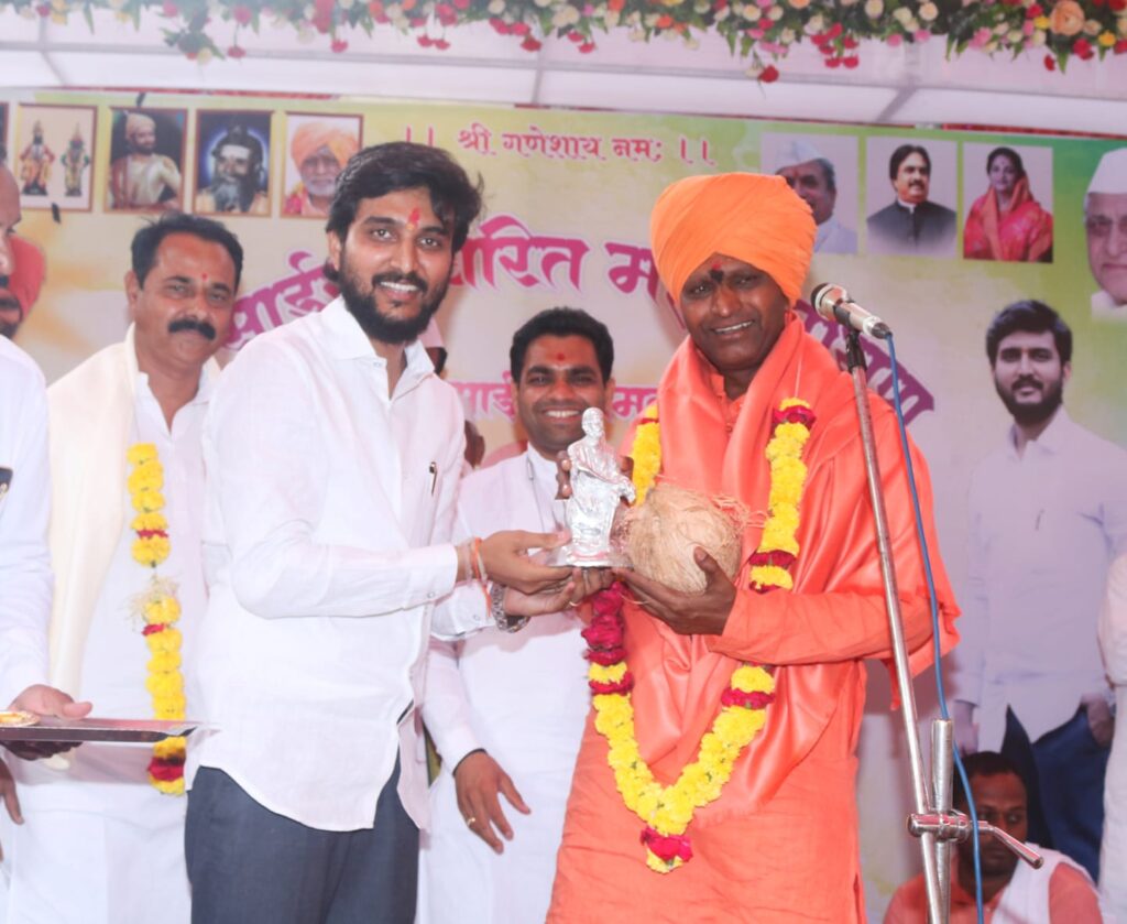 कोपरगाव तालुक्यातील येसगाव येथे ओम श्री साई ग्रुपने आयोजित केलेल्या श्री साई सच्चरित्र महापारायण व संगीतमय साई कथामृत सोहळ्याची मंगळवारी (९ मे) श्रीक्षेत्र सराला बेटाचे मठाधिपती प. पू. ह.भ.प. रामगिरीजी महाराज यांच्या काल्याच्या कीर्तनाने भक्तिमय व मंगलमय वातावरणात सांगता झाली. विवेकभैय्या कोल्हे यांनी या सोहळ्यास उपस्थित राहून प. पू. ह.भ.प. रामगिरीजी महाराज यांचे आशीर्वाद घेऊन त्यांच्या सुश्राव्य कीर्तनाचा लाभ घेतला. येसगाव येथे दरवर्षी श्री साई सच्चरित्र महापारायण व संगीतमय साई कथामृत सोहळ्याचे आयोजन केले जाते. यंदा या सोहळ्याचे १२ वे वर्ष आहे. या सप्ताहात ह.भ.प. अरुण महाराज रोहोम कारवाडीकर यांच्या सुमधुर वाणीतून श्री साई संगीतमय कथा श्रवणाचा लाभ भाविकांनी घेतला. मंगळवारी सांगता सोहळ्यानिमित्त अवतरणिका ग्रंथ वाचन, पालखी मिरवणूक, महाप्रसादाचा कार्यक्रम झाला. विवेकभैय्या कोल्हे म्हणाले, श्रीक्षेत्र सराला बेटाशी व तेथील सद्गुरू श्री गंगागिरी महाराज संस्थानशी माजी मंत्री सहकारमहर्षी स्व. शंकरराव कोल्हेसाहेबांपासून कोल्हे परिवाराचे गेल्या अनेक वर्षांपासून निकटचे संबंध आहेत. अध्यात्मासह व्यसनमुक्ती, बंधुता, देशप्रेम, महिला सशक्तीकरण या कार्यासाठी प्रोत्साहन देण्याचे तसेच योग्य परंपरांचे जतन करीत अनिष्ट रुढींची अनावश्यकता लोकांना समजावून सांगण्याचे काम श्रीक्षेत्र सराला बेटाच्या माध्यमातून अखंड सुरू आहे. श्रीक्षेत्र सराला बेटाचे मठाधिपती प. पू. ह.भ.प. रामगिरीजी महाराज हे ब्र. योगीराज सद्गुरू श्री गंगागिरीजी महाराज व ब्र. सद्गुरू श्री नारायणगिरीजी महाराज यांच्या कार्याची परंपरा आजही उत्तमप्रकारे अव्याहतपणे पुढे चालवत आहेत. कीर्तन, प्रवचनाच्या माध्यमातून ते समाजप्रबोधनाचे फार मोठे सत्कार्य करत आहेत. त्यांच्यामुळे माझ्यासारखे असंख्य तरुण परमार्थाच्या मार्गाकडे वळले आहेत. प. पू. महंत रामगिरीजी महाराजांनी अनेक तरुणांना अध्यात्माची, परमार्थाची गोडी लावली आहे. त्यामुळे युवा वर्गामध्ये मोठा बदल घडल्याचे दिसून येत आहे. त्याबद्दल विवेकभैय्या कोल्हे यांनी ह.भ.प. रामगिरीजी महाराजांचे आभार मानले. येसगाव व परिसरातील नागरिकांना अध्यात्माची आवड असून, येसगावमध्ये सतत धार्मिक कार्यक्रम होत असतात. ह.भ.प. रामगिरीजी महाराजांनी आपला आशीर्वाद सतत येसगावकरांच्या पाठीशी राहू द्यावा, अशी अपेक्षा विवेकभैय्या कोल्हे यांनी व्यक्त केली. धार्मिक कार्याला स्व. शंकरराव कोल्हेसाहेबांचे नेहमीच सहकार्य लाभले. त्यांची ही परंपरा यापुढेही कायम ठेवून कोल्हे परिवार व संजीवनी उद्योग समुहाच्या वतीने धार्मिक कार्यक्रमांना कायम सहकार्य करण्यात येईल, अशी