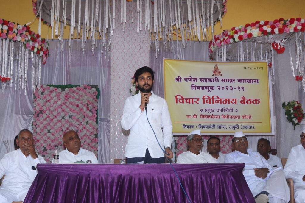 गणेश परिसराची कामधेनु म्हणून ओळखल्या जाणार्या गणेश सहकारी साखर कारखान्याच्या संचालक मंडळाच्या पंचवार्षिक निवडणुकीची प्रक्रिया सुरू झाली आहे. या निवडणुकीसाठी १५ मेपासून उमेदवारी अर्ज दाखल करण्यास सुरुवात झाली आहे. या पार्श्वभूमीवर गणेश कारखान्याच्या सभासद शेतकरी व कार्यकर्त्यांनी पुणतांबा येथे युवा नेते विवेकभैय्या कोल्हे यांची गाडी अडवून गणेश साखर कारखाना वाचविण्यासाठी विवेकभैय्या कोल्हे यांनी संचालक मंडळाच्या निवडणुकीत व्यक्तिश: लक्ष घालावे, अशी आग्रही विनंती त्यांना केली होती. त्या अनुषंगाने मंगळवारी (१६ मे २०२३) साकुरी (ता. राहाता) येथील शिव-पार्वती लॉन्स येथे विचारविनिमय करण्यासाठी एक बैठक आयोजित केली होती. या बैठकीच्या अध्यक्षस्थानी गणेश कारखान्याचे माजी संचालक गंगाधरराव चौधरी होते. या बैठकीत युवा नेते विवेकभैय्या कोल्हे यांनी कारखान्याचे माजी संचालक, सभासद व कार्यकर्त्यांचे म्हणणे ऐकून घेतले.