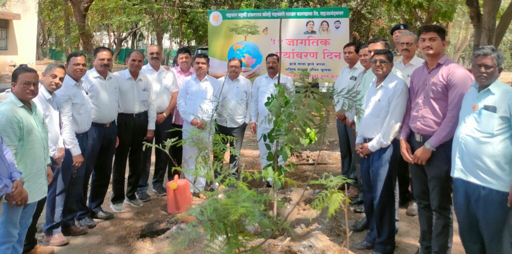 सहकारमहर्षी शंकरराव कोल्हे सहकारी साखर कारखाना कार्यस्थळावर जागतिक पर्यावरण दिनानिमीत्त शंभर वृक्षांचे रोपण करण्यांत आले.प्रारंभी संचालक बाळासाहेब वक्ते यांनी प्रास्ताविक केले. अध्यक्षपदावरुन बोलताना कारखान्याचे उपाध्यक्ष रमेश घोडेराव म्हणाले की, संजीवनी उद्योग समुहाचे अध्यक्ष बिपीनदादा कोल्हे यांचे वृक्षावर विशेष प्रेम असुन त्यांनी कोपरगांव विधानसभा मतदार संघासह कार्यक्षेत्रात विविध प्रसंगानुरूप वृक्षारोपणोवर गेल्या २५ वर्षापासून सातत्याने भर देत आहे. कारखान्याचे अध्यक्ष विवेकभैय्या कोल्हे यांनी माजीमंत्री स्व. शंकरराव कोल्हे यांची आठवण म्हणुन शहरासह असंख्य गावात तसेच नगर-मनमाड महामार्ग, कोपरगांव संगमनेर मार्ग, झगडेफाटा परिसर, कोपरगांव पुणतांबा मार्गावर संजीवनी युवा प्रतिष्ठानच्या माध्यमातून हजारो वृक्षांचे रोपण करून तरुणाईने वृक्ष दत्तक घेऊन ते वाढविण्यावर भर दिला आहे. जिल्हयाच्या भौगोलिक क्षेत्रापैकी ३३ टक्के वनक्षेत्र आवश्यक असतांना ते केवळ ११ टक्केच आहे. पर्यावरण असंतुलनामुळे निसर्गचक्र बिघडले आहे. भूवैष्मीकीकरणामुळे अनेक प्रश्न निर्माण झाले त्यावर वृक्ष लावुन त्यांची वाढ करणे हा सोपा पर्याय आहे, त्यासाठी विवेकभैय्या कोल्हे जाणिवपुर्वक प्रयत्न करत आहे. निसर्ग वाचला तर भविष्यकाळ आपल्याला उज्वल राहील त्यासाठी सर्वांनी पर्यावरण संतुलन राखण्यासाठी प्रयत्न करावे व जास्तीत जास्त झाडे लावावे असे आवाहनही त्यांनी केले.या वृक्षलागवडीत कारखान्याचे कार्यकारी संचालक बाजीराव जी. सुतार, साखर सरव्यवस्थापक शिवाजीराव दिवटे, व्यवस्थापकीय व्यवस्थापक प्रकाश डुंबरे, यांच्यासह विविध खाते प्रमुख उपखाते प्रमुख, कर्मचारी आदि सहभागी झाले होते. शेवटी पर्यावरण अधिकारी देवेंद्र पाटील यांनी आभार मानले.
