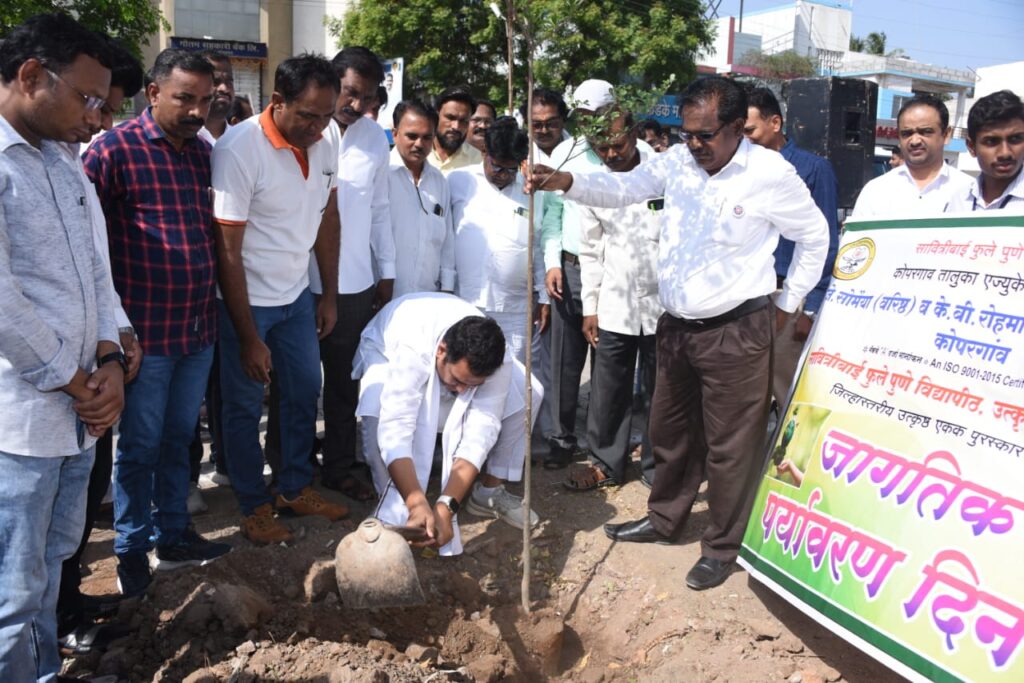 पर्यावरणाचा समतोल अजून बिघडला तर भविष्यात कठीण परिस्थिती निर्माण होईल त्यासाठी आत्ताच सावध होणे गरजेचे असून दैनंदिन व्यवहारात पर्यावरणाचे संवर्धन होईल याची काळजी घेणे महत्वाचे आहे. वृक्ष लागवड गरजेची आहे परंतु त्याचबरोबर वृक्षाचे संगोपन देखील अत्यंत महत्वाचे आहे. वृक्षांची लागवड करण्यात येते परंतु त्यांचे योग्य संगोपन न झाल्याने हे वृक्ष केवळ कागदोपत्रीच दिसतात. त्यामुळे वृक्षारोपण व वृक्ष संवर्धनाकडे सामाजिक बांधिलकीतून पाहणे आवश्यक असल्याचे आ. आशुतोष काळे यांनी यावेळी सांगितले.याप्रसंगी त्यांच्या हस्ते वृक्षारोपण करण्यात आले. यावेळी मुख्याधिकारी शांताराम गोसावी, राष्ट्रवादी काँग्रेसचे जिल्हा कार्याध्यक्ष संदीप वर्पे, शहराध्यक्ष सुनील गंगूले, जिनिंग व प्रेसिंग सोसायटीचे चेअरमन गोरक्षनाथ जामदार, कृषी उत्पन्न बाजार समितीचे संचालक रामदास केकाण, के.जे.सोमैय्या महवविद्यालयाचे चेअरमन संदिप रोहमारे, माजी नगरसेवक गटनेते विरेन बोरावके, मंदार पहाडे, सौ. प्रतिभा शिलेदार, सौ. माधवी वाकचौरे, हाजीमेहमूद सय्यद, राजेंद्रवाकचौरे, अजीज शेख, जावेदई शेख, चंद्रशेखर म्हस्के, प्रकाश दुशिंग, राजेंद्र खैरनार, धनंजय कहार, संदीप कपिले, आकाश डागा, राजेंद्र आभाळे, डॉ. आतिष काळे, योगेश नरोडे, महेश उदावंत, विजय दाभाडे, पुंडलिक वायखिंडे, बाळासाहेब बारसे, परेश उदावंत, सागर विदुर, सचिन गवारे, शैलेश साबळे, योगेश वाणी, गणेश बोरुडे, जुनेद शेख, अय्युब कच्छी, राजेंद्र फुलफगर, प्रा. यादव, विशाल गुंजाळ, अमोल गिरमे, प्रदीप कुऱ्हाडे, किरण बागुल, गौतम खंडीझोड, रोहित वाघ, राकेश काले, मंदार आढाव, संजय कट्टे, अकील चोपदार, चंद्रशेखर देशमुख, महेश सावंत, शंकर निकम, सिमा पानगव्हाणे, भावना गवांदे, जयश्री जाधव, अंबादास आढाव, बाळासाहेब गायकवाड, विलास पाटोळे, संतोष आहेर, उपमुख्याधिकारी ज्ञानेश्वर चाकणे, संगणक अभियंता भालचंद्र उंबरजे, आरोग्य अधिकारी सुनील आरणे, समनव्यक प्रविण मोटे आदी उपस्थित होते.जागतिक पर्यावरण दिनानिमित्त वृक्षारोपण करतांना आ. आशुतोष काळे