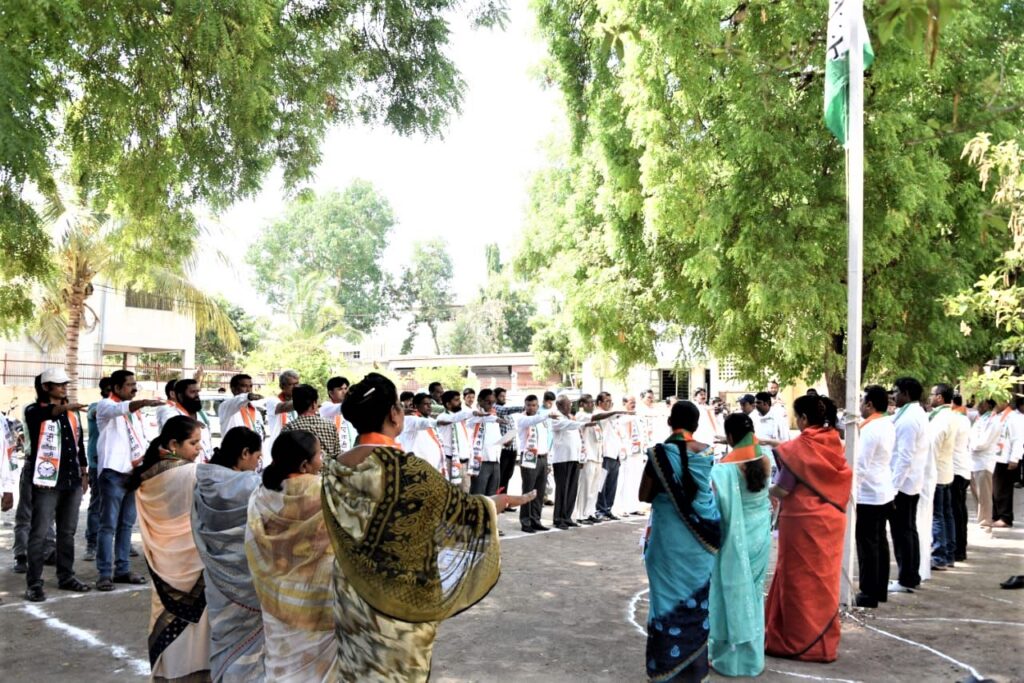 फोटो ओळ – कोपरगाव येथे राष्ट्रवादी कॉंग्रेस पक्षाच्या २५ व्या वर्धापन दिन प्रसंगी राष्ट्रवादी काँग्रेस पक्षाच्या ध्वजाचे पदाधिकाऱ्यांच्या हस्ते ध्वजारोहण करण्यात आले.