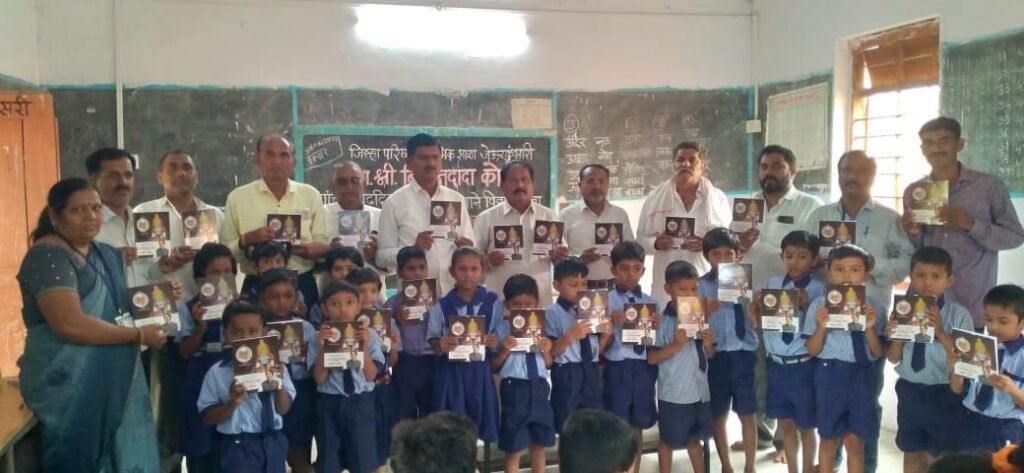 शाळेत मोफत वह्यांचे वाटप करण्यात आले.