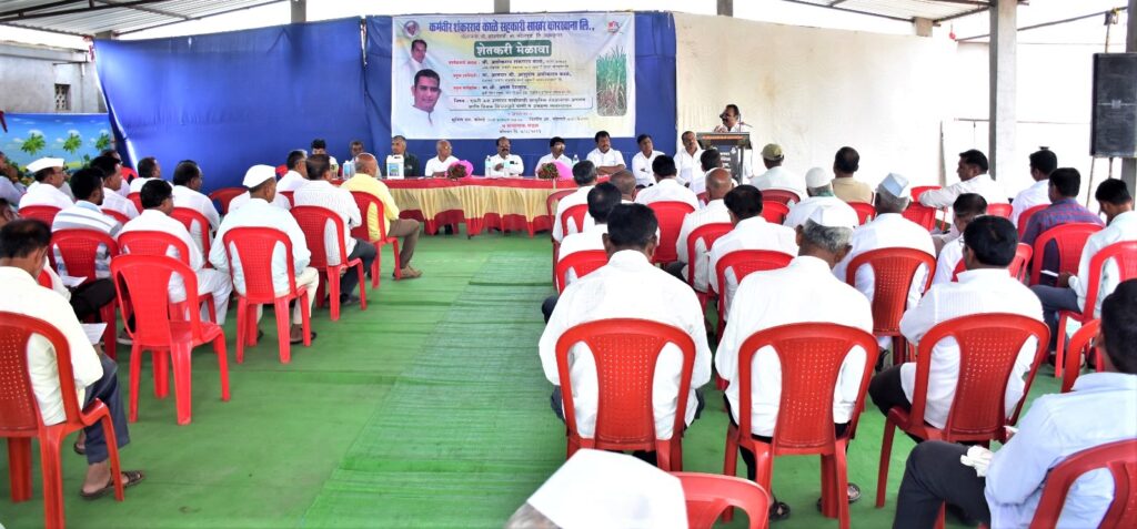 पुढे बोलतांना अरुण देशमुख म्हणाले की, ऊस उत्पादन वाढीसाठी रासायनिक खताबरोबरच जमिनीचा सेंद्रीय कर्ब वाढविणे आवश्यक आहे. दिवसेदिवंस जमिनीची सामु व क्षारता वाढत आहे. त्यामुळे उत्पादकता कमी झाली असून ऊस पिकाला उत्पादन वाढविणेसाठी ठिबक सिंचनाचा वापर फायद्याचा आहे. कमी पाण्यात अधिकचे उत्पादन मिळविण्यासाठी खत मात्राचा बचतीसाठी ठिबक शेती खात्रीचा मार्ग असुन त्यांचा अवलंब करावा. कर्मवीर शंकरराव काळे साहेबांच्या कार्याचा गौरव करतांना ते म्हणाले की, कर्मवीर भाऊराव पाटील यांनी रयत शिक्षण संस्थेच जे छोटेसे रोपटे लावले त्याचा वटवृक्ष करण्याचे काम कर्मवीर शंकररावजी काळे यांनी केले असल्याचे सांगत ते नेहमी ऊस उत्पादक शेतकऱ्यांची काळजी करीत असल्याचे त्यांनी सांगितले. तीच परंपरा जेष्ठ संचालक, माजी आमदार अशोकराव काळे व कोपरगाव तालुक्याचे कार्यसम्राट आमदार आशुतोष काळे यांनी पुढे सुरु ठेवून कारखाना कार्यक्षेत्रात ऊस वाढीसाठी सातत्याने शेतकरी मेळाव्याचे आयोजन करत असतात. शेतीच्या पाण्याचा प्रश्न गंभीर होत चालला आहे. त्यातून शेतकऱ्यांना आपले ऊसाचे पिक कसे टिकवायचे यासाठी सर्व ऊस उत्पादक सभासदांना गटवार जनजागृती करुन त्याबाबत शास्त्रोक्त मार्गदर्शन करीत आहे.ठिबक सिंचनाची सुरवात हि इस्त्रायल सारख्या देशात झाली. पाण्याचे अत्यंत दुर्भिक्ष असणाऱ्या इस्त्रायल देशाने कृषी क्षेत्रात सर्वात मोठी भरारी घेतली आहे. त्याचे महत्वाचे कारण आहे. पाण्याचा काटकसरीने केलेला वापर आपल्या देशात सुध्दा इस्त्रायल तंत्रज्ञाना वापरने गरजेचे आहे. पिकाला जास्त पाण्याची आवश्यकता नसुन पाणी मापात आणि वेळेत देणे गरजेचे आहे. आपल्या देशात दर दोन वर्षाने अवर्षण परिस्थिती निर्माण होणे नित्याचे झाले आहे. अशा परिस्थितीत उपलब्ध पाण्याचा कार्यक्षमतेने वापर ठिबक व स्प्रिंकलरद्वारे होईल. जमिनीची सुपीकता व उत्पादकता टिकविण्यासाठी ठिबक सिंचनाचा वापर होणे गरजेचे आहे.ऊस पिकास वेळोवेळी व प्रमाणशीर पद्धतीने रासायनिक व जैविक खते सुध्दा ठिबक सिंचनाने शक्य होते. ऊस शेती जगवायची असेल तर ठिबक सिंचनाशिवाय पर्याय नाही. या शेतकरी मेळाव्यात जय गुरुदेव इरिगेशन प्रतिनिधी भाऊसाहेब मोरे व त्यांच्या सहकारी यांनी नेटाफिम कंपनीनेचे ठिबक संचाची माहिती करुन दिली तसेच शेतकऱ्यांना शास्त्रोक्त पध्दतीने पाण्याच्या बचतीचे प्रत्यक्ष प्रात्याक्षिक देखील करून दाखविले.कार्यक्रमाचे प्रास्तविक करतांना कारखान्याचे प्र. कार्यकारी संचालक सुनील कोल्हे यांनी कारखान्यात चालु असलेला आधुनिक तंत्रज्ञान बदलाबाबत शेतकऱ्यांना माहिती करुन दिली. तसेच शेतकऱ्यांनी कारखाना नर्सरीत तयार होणारे पायाभुत ऊस 