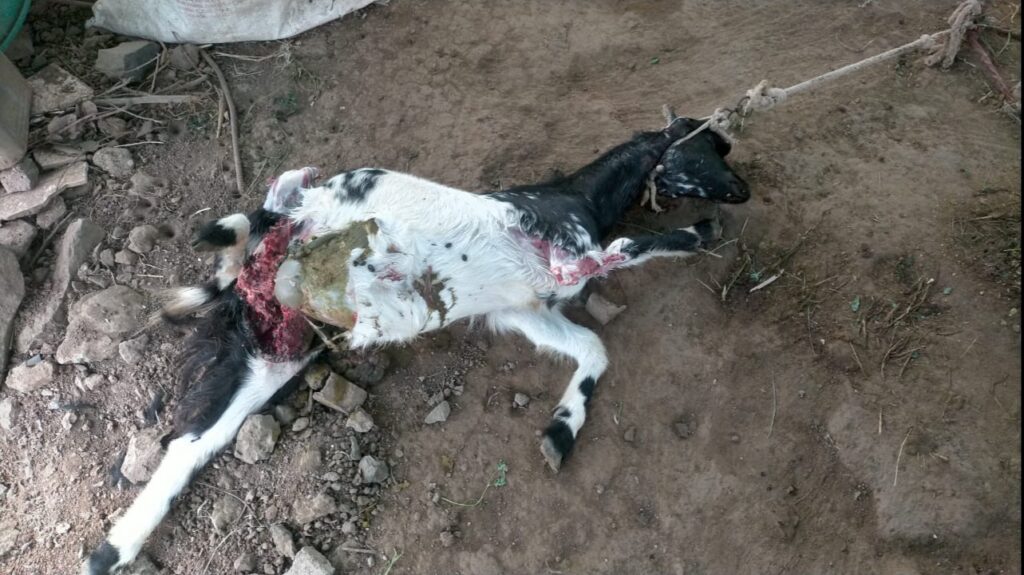 दि १०ऑगस्ट रोजी पहाटे ४ वाजण्याच्या सुमारास डाऊच खुर्द येथील गोरक सोमाजी पुंगळ यांच्या गोठ्यात बांधलेल्या दोन शेळ्यांवर बिबट्यानाने हल्ला करून एक जागिच ठार केला आहे. अंदाजे आठ ते नऊ हजार रूपये किंमतीचा विक्रीला आलेली शेळी ठार झाल्यामुळे गोरक पुंगळ या शेतकऱ्याचे मोठे नुकसान झाले आहे.
