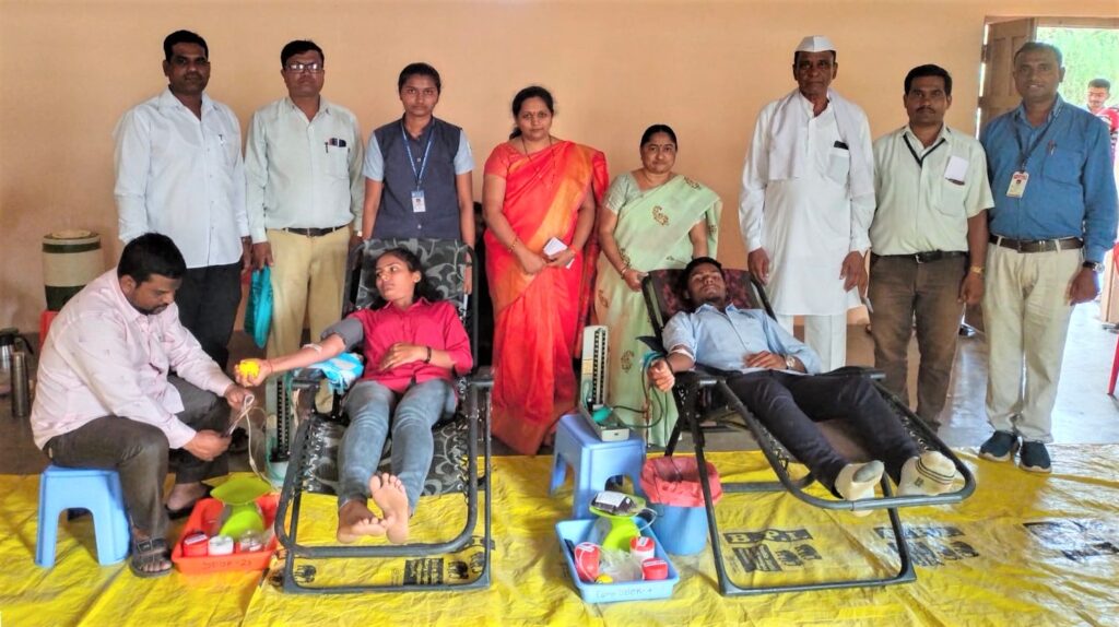 सौ. सुशीलामाई काळे कला, वाणिज्य व विज्ञान महाविद्यालयात रक्तदान शिबिर प्रसंगी विश्वस्त सिकंदर चांद पटेल, प्राचार्या डॉ. सौ. विजया गुरसळ, प्राचार्या डॉ. सौ. विजया गुरसळ व रक्तदान करतांना विद्यार्थी.