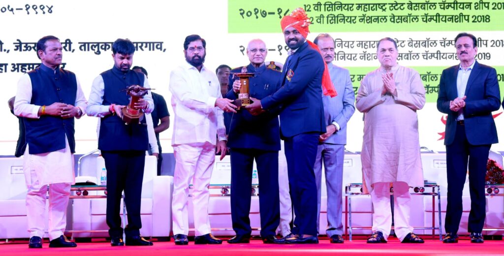 महाराष्ट्र शासनाच्या वतीने नुकताच बालेवाडी क्रीडा संकुल पुणे या ठीकाणी शिवछत्रपती पुरस्कार प्राप्त खेळाडुंना राज्याचे राज्यपाल मा.रमेश बैस यांचे शुभहस्ते पुरस्कार प्रदान करण्यात आला.त्या प्रसंगी राज्याचे मुख्यमंत्री श्री.एकनाथ शिंदे ,उपमुख्यमंत्री देंवेंद्र फडवणीस व अजितदादा पवार तसेच पालकमंत्री चंद्रकांत पाटील,क्रीडा मंत्री संजय बनसोड,ग्रामविकास मंत्री गिरीष महाजन या प्रसंगी उपस्थित होते.