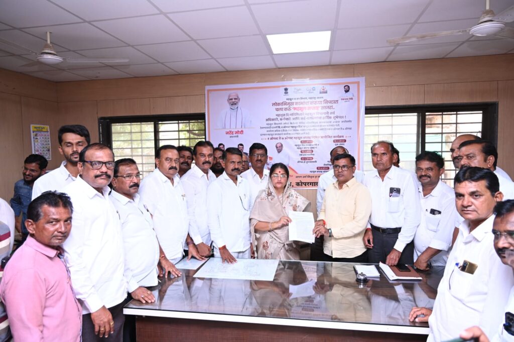 माजी आमदार तथा भाजप नेत्या स्नेहलताताई कोल्हे यांच्या नेतृत्वाखाली कोपरगाव तालुक्यातील शेतकऱ्यांनी शनिवारी (२ सप्टेंबर) तहसीलदार संदीपकुमार भोसले यांना भेटून पाटपाणी, विजेचा प्रश्न, गतवर्षी सततच्या पावसाने झालेल्या नुकसानीपोटी शासनाकडून देण्यात येणारे अनुदान, पीक विमा तसेच नागरिकांना बिबट्यापासून होत असलेल्या त्रासाबाबत विविध मागण्यांचे निवेदन सादर केले. कोपरगाव तालुक्यात पावसाअभावी दुष्काळजन्य परिस्थिती निर्माण झाल्यामुळे तात्काळ दुष्काळ जाहीर करावा आणि पाणी, चारा डेपो, वीज, अग्रीम पीक विमा वाटप व दुष्काळ निवारणासाठी आवश्यक उपाययोजना तात्काळ करण्याची आग्रही मागणी स्नेहलताताई कोल्हे यांनी तहसीलदार संदीपकुमार भोसले यांच्याकडे केली.