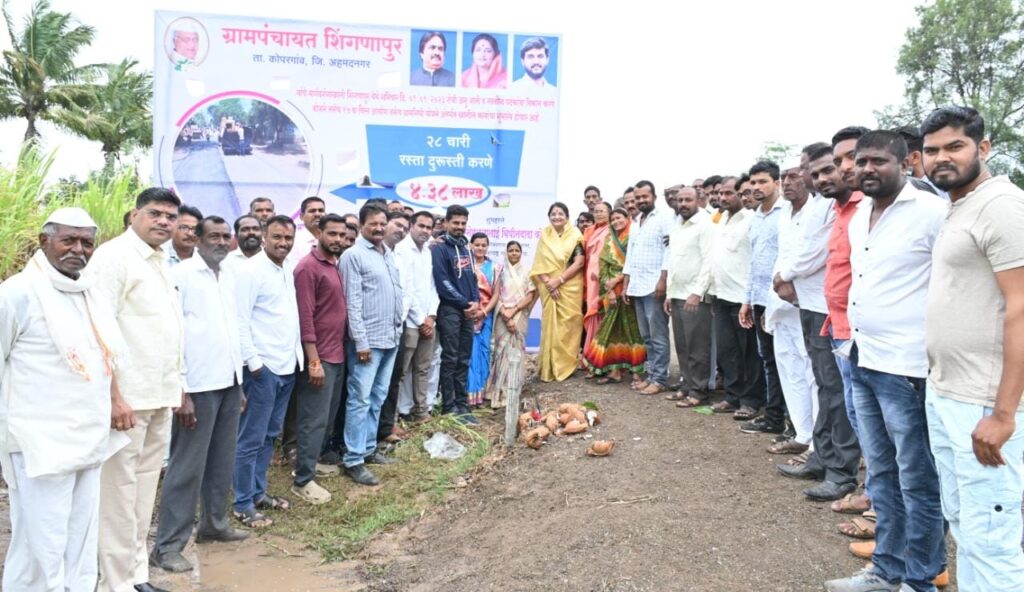 कोपरगाव तालुक्यातील शिंगणापूर येथे ग्रामपंचायतच्या वतीने अनुसूचित जाती व नवबौद्ध घटकांच्या वस्तीचा विकास योजनेतून संजीवनी गेट येथे रस्ता काँक्रिटीकरण (१० लाख रुपये), गणेशनगर येथे बंदिस्त गटार/पेव्हर ब्लॉक (१० लाख रुपये), ज्ञानेश्वरनगर येथे बंदिस्त गटार करणे (९ लाख रुपये), दत्तनगरमध्ये रस्ता काँक्रिटीकरण व बंदिस्त गटार करणे (१३ लाख रुपये), १५ व्या वित्त आयोगातून स्मशानभूमीला वॉल कंपाऊंड करणे (२ लाख रु.), गणेशनगरमध्ये शाळा परिसरात बंदिस्त गटार करणे (दीड लाख रु.), २८ नं. चारी येथे रस्ता दुरुस्ती (४ लाख ३८ हजार रु.), ग्राम निधीतून स्मशानभूमी खोली दुरुस्ती (१ लाख रु.), गणेशनगरमध्ये शाळा खोली दुरुस्ती (१ लाख रु.), २८ नं. चारी येथे गावांतर्गत रस्ता मुरूमीकरण करणे (२ लाख रु.), संजीवनी गेट येथे रस्ता काँक्रिटीकरण करणे (२ लाख रुपये) अशा विविध विकासकामांचा शुभारंभ स्नेहलताताई कोल्हे यांच्या हस्ते शनिवारी (९ सप्टेंबर) करण्यात आला. त्याप्रसंगी त्या बोलत होत्या. प्रारंभी उपसरपंच रत्नाताई श्याम संवत्सरकर, माजी सरपंच कुसुमताई संवत्सरकर, शिल्पाताई संदीप संवत्सरकर, राजश्रीताई काळे, भगवान संवत्सरकर आदींनी स्नेहलताताई कोल्हे यांचे स्वागत केले. सरपंच डॉ. विजय काळे, माजी सरपंच यादवराव संवत्सरकर, भीमा संवत्सरकर, भाऊसाहेब वाघ, प्रमोद संवत्सरकर आदींची भाषणे झाली. सूत्रसंचालन लक्ष्मीकांत संवत्सरकर तर आभार प्रदर्शन अविनाश संवत्सरकर यांनी केले.