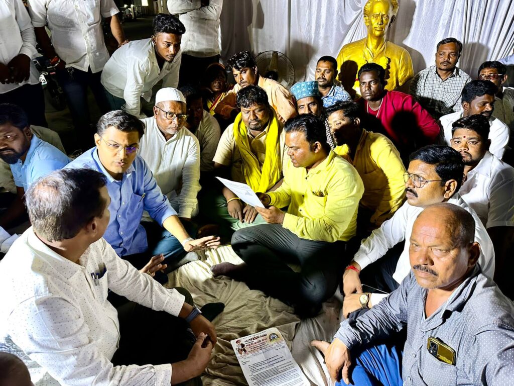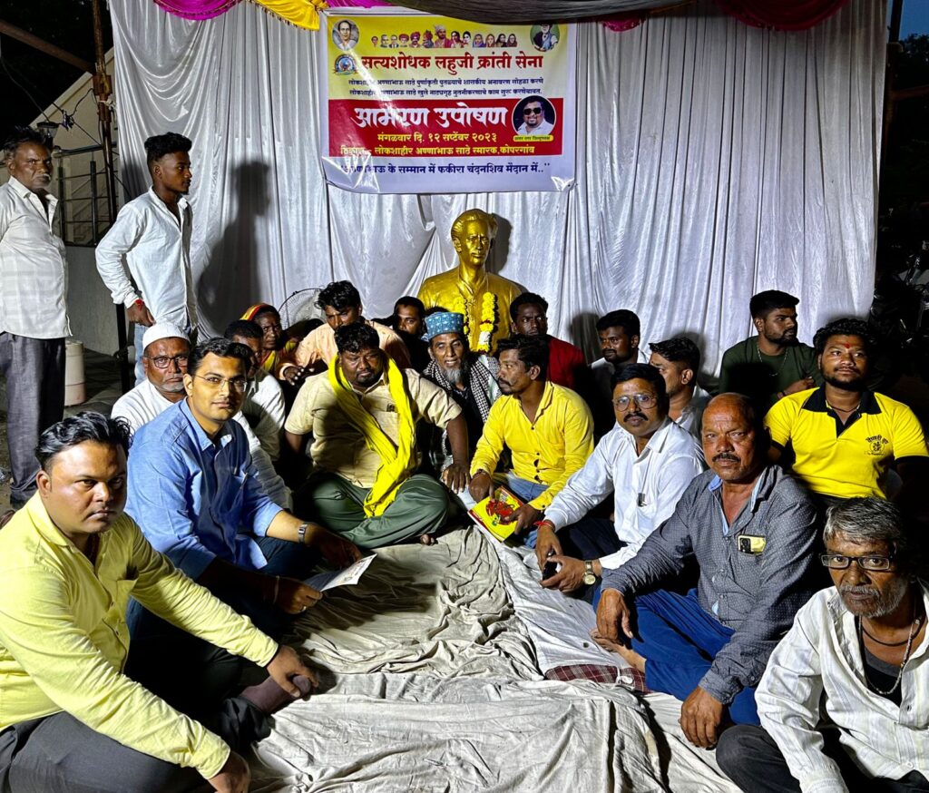 कोपरगाव शहरातील लोकशाहीर अण्णाभाऊ साठे यांच्या पूर्णाकृती पुतळ्याचे शासकीय अनावरण त्वरित करावे, लोकशाहीर अण्णाभाऊ साठे खुले नाट्यगृहाच्या नूतनीकरणाचे काम तातडीने चालू करावे, या मागण्यांसाठी सत्यशोधक लहुजी क्रांती सेनेचे उत्तर नगर जिल्हाध्यक्ष फकिरा चंदनशिव यांनी सुरू केलेल्या आमरण उपोषणास कोपरगाव तालुका काँग्रेसचे तालुकाध्यक्ष आकाश नागरे यांनी भेट घेऊन जाहीर पाठिंबा दिला. यावेळी कोपरगांव काँग्रेस कमिटीचे सरचिटणीस रवींद्र साबळे, अल्पसंख्यक काँग्रेसचे अध्यक्ष छोटुभाई पठाण, विष्णु पाडेकर, रफिकभाई शेख, यादवराव त्रिभुवन, रामनाथ गाडे, संतोष पवार, दीपक गोसावी, प्रमोद हिरे, काँग्रेस पक्षाचे कार्यकर्ते, लहुजी क्रांतिसेनेचे पदाधिकारी, विविध पत्रकार उपस्थित होते.