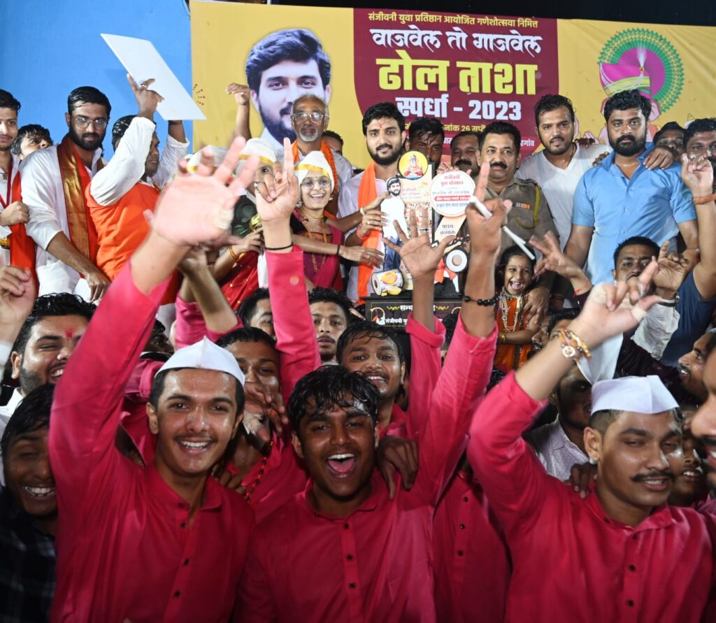 अहमदनगर जिल्ह्यात पहिल्यांदाच कोपरगाव शहरात संजीवनी युवा प्रतिष्ठानचे संस्थापक अध्यक्ष युवा नेते विवेकभैय्या कोल्हे यांच्या संकल्पनेतून यावर्षी गणेशोत्सवानिमित्त आयोजित केलेल्या ‘वाजवेल तो गाजवेल ढोल-ताशा वादन स्पर्धा-२०२३’ ला उत्स्फूर्त व भरघोस प्रतिसाद लाभला. कोपरगाव येथील भारतरत्न डॉ. बाबासाहेब आंबेडकर मैदानात मंगळवारी (२६ सप्टेंबर) रात्री भरपावसात मोठ्या जल्लोषात पार पडलेल्या या स्पर्धेत सहभागी झालेल्या ढोल-ताशा पथकांनी शिस्तीत वैशिष्ट्यपूर्ण लय व तालबद्ध ढोल वादन करून उपस्थितांना मंत्रमुग्ध केले. या स्पर्धेच्या निमित्ताने संपूर्ण शहर ढोल-ताशा, झांज, घंटा अशा पारंपरिक वाद्यांच्या दणदणाटाने व ‘गणपती बाप्पा मोरया’, ‘जय भवानी, जय शिवाजी’च्या गगनभेदी घोषणांनी दुमदुमून गेले होते. पुढील वर्षी मोठ्या जागेत आकर्षक बक्षिसांसह भव्य प्रमाणात ही स्पर्धा घेतली जाईल, असे विवेकभैय्या कोल्हे यांनी यावेळी घोषित केले.