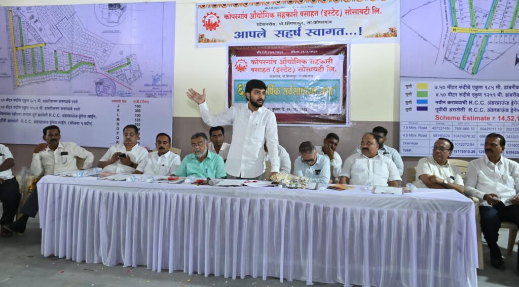 ते म्हणाले, उद्योग-व्यवसाय वाढीसाठी आवश्यक असलेल्या रस्ते, पाणी व वीज या तीन मूलभूत सुविधा उद्योजकांना प्राधान्याने पुरविण्यावर संचालक मंडळाने भर दिला आहे. औद्योगिक वसाहतीतील उद्योजकांना सुरळीत वीजपुरवठा होण्यासाठी संजीवनी उद्योग समुहाचे अध्यक्ष बिपीनदादा कोल्हे व माजी आमदार स्नेहलताताई कोल्हे यांच्या माध्यमातून औद्योगिक वसाहतीत ५ एमव्हीए क्षमतेचे दोन नवीन पॉवर ट्रान्सफार्मर बसवून अखंड वीजपुरवठ्याची सोय केली. नवी पाईपलाईन टाकून पाण्याची व्यवस्था केली. वसाहतीमधील अंतर्गत रस्ते रुंद व मजबूत करण्यासाठी तसेच अंडरग्राउंड आरसीसी ड्रेनेजचा सुधारित १४ कोटी ५२ लाख १३ हजार ५०० रुपयांचा प्रस्ताव शासनाने मंजूर केला आहे. त्यात शासनाकडून ७५ टक्के म्हणजे १० कोटी ८९ लाख १० हजार १२५ रुपयांचा निधी मिळणार असून, २५ टक्के ३ कोटी ६३ लाख ३ हजार ३७५ रुपये संस्थेला एमआयडीसीकडे जमा करावयाचे आहेत. औद्योगिक वसाहतीतील उद्योजकांना चांगल्या सुविधा पुरविण्यासाठी संस्थेने सरकारकडे २५:७५ या योजनेअंतर्गत प्रस्ताव दाखल केलेला आहे. त्यात पहिल्या टप्प्यात संस्थेची योजना नं. २ मधील अंडरग्राउंड आरसीसी ड्रेनेजचे ४२ लाख ७९ हजार ४४५ रुपयांचे काम पूर्ण झाले आहे. संस्थेने दुसऱ्या टप्प्यात वसाहतीत अंतर्गत रस्त्याचे खडीकरण व डांबरीकरण तसेच योजना नं. १ चा उर्वरित अंडरग्राउंड आरसीसी ड्रेनेज स्कीमचा १४ कोटी ५२ लाख १३ हजार ५०० रुपये खर्चाचा दाखल केलेला प्रस्ताव स्नेहलताताई कोल्हे यांच्या प्रयत्नाने मंजूर झालेला आहे. त्याचे काम पूर्ण झाल्यावर उर्वरित सोयी-सुविधा पुरविण्यासाठी संस्था टप्प्या-टप्प्याने शासनाकडे प्रस्ताव सादर करणार आहे. संस्थेच्या थकबाकीदर सभासदांनी थकबाकी त्वरित भरून वसाहतीच्या विकासाला हातभार लावावा, असे आवाहन त्यांनी केले..