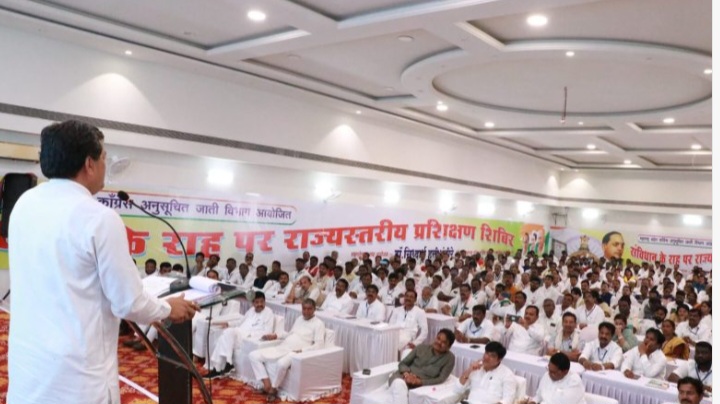 भाजप सरकार सत्तेत आल्या पासून सतत घटना विरोधी कृत्य करत आहे. भारतीय संविधानाने आपल्याला लोकशाही मूल्य दिलेली असतांना मानवी मूल्य तुडविली जात आहेत, स्वातंत्र्यचा गळा घोटण्याचं काम इथे होतं आहे याचे मोठे उदाहरणं म्हणजे मणिपूरमध्ये चालू असलेला नर संहार. आज मणिपूर वर लोकशाही चे मंदिर असलेल्या पार्लमेंट मध्ये मणिपूर विषयावर बोलू दिलं जात नाही. ३५० हुन अधिक चर्च मणिपूर जाळलंय तसेच २ ते ३ मंदिर उध्वस्त केली गेली मात्र, त्यावर अजूनही प्रधानमंत्री मोदी यांनी त्यावर तोडगा काढला नाही. एकप्रकारे हा देश धोक्यात आला आहे असे सांगून मुकुल वासनिक यांनी भारतीय घटना शाबूत ठेवण्यासाठी काँग्रेस पक्ष शेवटपर्यंत लढा चालूच ठेवेल संपूर्ण भारतीयांनी काँग्रेस विचार धारा जोपसावी असे आवाहन करत भारतीय घटना तयार करतांना मसुदा समितीच्या झालेल्या सभा, त्यांचे अध्यक्ष व तारखाचा अभ्यासपूर्ण उल्लेख केला. संविधान कि राह पर या राज्यस्तरीय शिबिराचे आयोजन करून आयोजक सिद्धार्थ हत्तीअभीरे यांनी आपल्या नेतृत्वाची चुणूक दाखवली प्रत्येक ठिकाणी असा कार्यकर्ता तयार व्हावा अशीच अपेक्षा खा. वासनिक यांनी व्यक्त केली. कार्यक्रमाच्या सुरुवातीला महापुरुशांच्या प्रतिमांचे पूजन करून झाली.कार्यक्रमाचे प्रास्ताविक शिबिराचे आयोजक सिद्धार्थ हत्ती अंभीरे यांनी केले अनुसूचित जातीच्या प्रश्नावर आम्ही राज्यभर रस्त्यावर उतरू असे सांगून अनुसूचित जातीच्या योजना प्रभावी रित्या अमलबजावणी झाली पाहिजे अशी आग्रही मागणी केली. सुरुवातीला खा. मुकुल वासनिक आणि राजेश लिलोठीया यांचे स्वागत प्रदेशाध्यक्ष सिद्धार्थ हत्ती अंभीरे केले. सुत्रसंचलन पवनकुमार डोंगरे यांनी केले.