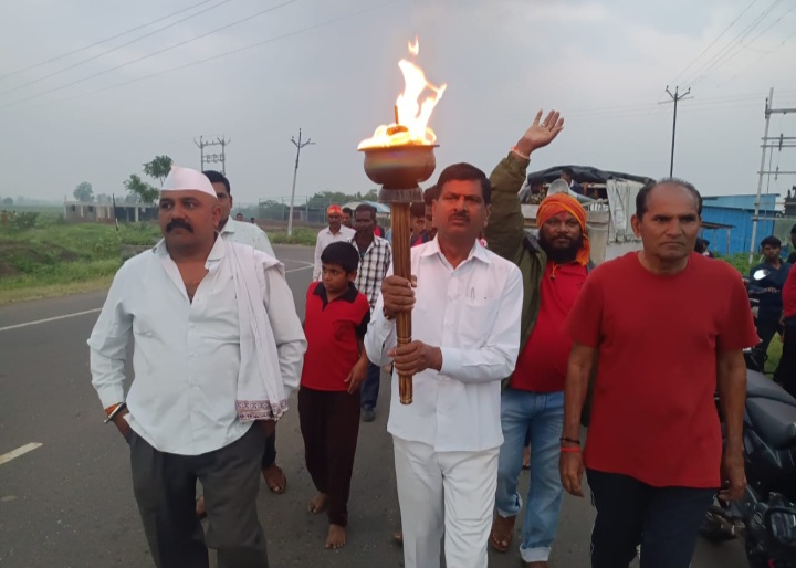 पवार वस्ती येथील जय अंबिका तरूण मंडळाने पायी ज्योती आणण्यासाठी काल दिनांक १४ ऑगस्ट रोजी पवार वस्ती येथून प्रस्थान केले. याप्रसंगी सरपंच सुवर्णा पवार यांनी भगवान एकलव्य यांना नारळ वाढवून मंडळास पायी ज्योत आणण्यास निरोप देण्यात आला.