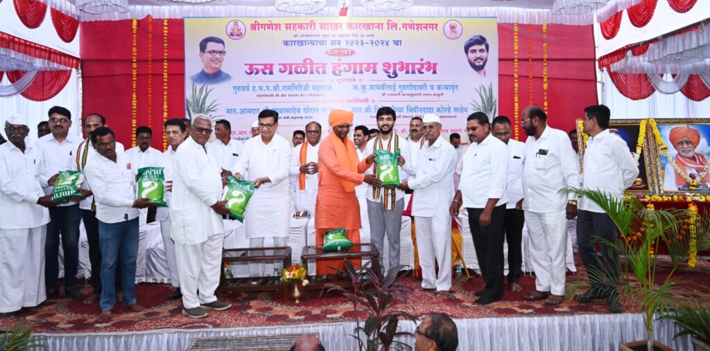 गणेशनगर परिसराची कामधेनु असलेला गणेश साखर कारखाना अनेक संकटांना तोंड देत आज सुरू झाला आहे. आता ‘गणेश’ ची समृद्धीकडे वाटचाल सुरू झाली आहे. सध्याच्या स्पर्धेच्या काळात इतर कारखान्यांच्या बरोबरीने गणेश कारखाना उसाला निश्चितच चांगला भाव देईल. येणारा काळ हा खूप आव्हानात्मक आहे. गणेश कारखाना आर्थिक अडचणीतून बाहेर काढून ‘गणेश’ परिसराला गतवैभव प्राप्त करून देण्यासाठी आम्ही कटिबद्ध आहोत. त्यासाठी सर्व सभासद शेतकऱ्यांनी आम्हाला साथ द्यावी, असे आवाहन कोपरगावच्या सहकारमहर्षी शंकरराव कोल्हे सहकारी साखर कारखान्याचे अध्यक्ष युवा नेते विवेकभैय्या कोल्हे यांनी केले. गणेशनगर (ता. राहाता) येथील श्री गणेश सहकारी साखर कारखान्याच्या सन २०२३-२४ च्या ६२ व्या गळीत हंगामाचा शुभारंभ श्रीक्षेत्र सराला बेटाचे (गोदा धाम) मठाधिपती ह.भ. प. रामगिरीजी महाराज व श्री उपासनी कन्याकुमारी स्थान (साकुरी) च्या विश्वस्त माधवीताई गुरू गोदावरी यांच्या हस्ते तसेच माजी महसूलमंत्री व गणेश कारखान्याचे मार्गदर्शक आ. बाळासाहेब थोरात व सहकारमहर्षी शंकरराव कोल्हे सहकारी साखर कारखान्याचे अध्यक्ष तथा गणेश कारखान्याचे मार्गदर्शक, युवा नेते विवेकभैय्या कोल्हे यांच्या प्रमुख उपस्थितीत शुक्रवारी (३ नोव्हेंबर) झाला. गणेश कारखान्याने सर्व सभासदांची दिवाळी गोड व्हावी, या भूमिकेतून सर्व सभासदांना दहा किलो साखर मोफत देण्याचे जाहीर केले होते त्या प्रमाणे वितरण देखील सुरू झाले आहे.