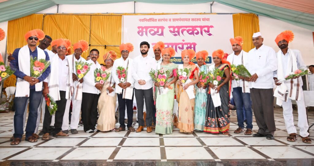 नुकत्याच पार पडलेल्या ग्रामपंचायत निवडणुकीत विजयी झालेल्या राहता तालुक्यातील नवनिर्वाचित सरपंच आणि सदस्य यांचा सत्कार सोहळा कोल्हे कारखान्याचे चेअरमन युवानेते विवेकभैय्या कोल्हे व मान्यवरांच्या शुभहस्ते साई विठ्ठला लॉन्स राहता येथे पार पडला.या प्रसंगी बोलताना विवेकभैय्या कोल्हे म्हणाले की ग्रामपंचायत ही ग्रामीण विकासाचे केंद्र आहे.निवडणुका संपल्या की राजकारण संपले पाहिजे.विरोधाला विरोध करून काम करणे ही आमची पद्धत नाही.या पूर्वी देखील संस्था हित बघून श्री गणेश कारखाना निवडणुकीत तुम्ही हाक दिली त्याला आम्ही प्रतिसाद दिला तसेच आगामी काळात देखील ज्या ज्या निवडणूक येतील त्यात खंबीरपणे तुमच्या सोबत उभे राहू.पुणतांबा,वाकडी,चितळी या मोठ्या ग्रामपंचायत जिंकून जनतेचा कौल स्पष्ट झाला आहे.जे सदस्य विजयी झाले त्यासह जे कोणत्याही दबावाला बळी न पडता लढले ही खरी ताकद आहे.