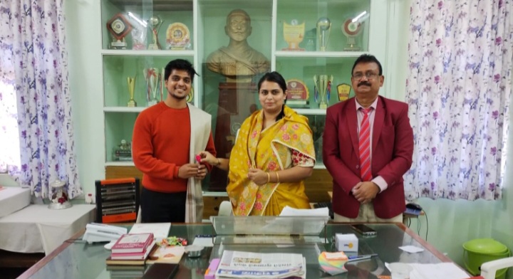 दिनांक- नेदरलँड येथे सिनिअर डीझाइन इंजीनीअर म्हणून कार्यरत असलेल्या गौतम पब्लिक स्कूलचे माजी विद्यार्थी शुभम मोरे यांचा सत्कार करतांना सौ. चैतालीताई काळे समवेत प्राचार्य नूर शेख