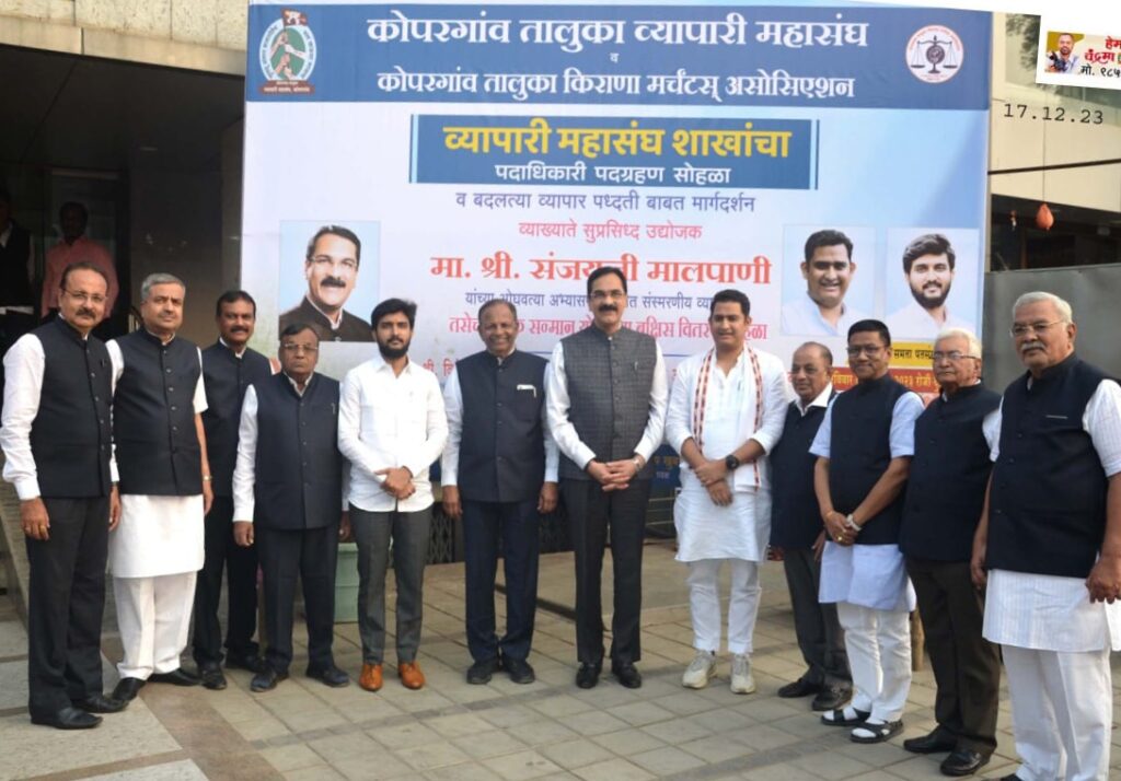कोपरगाव तालुका व्यापारी महासंघ व कोपरगाव तालुका किराणा मर्चंट असोसिएशन यांच्यावतीने बदलत्या व्यापार पद्धतीबाबत तालुक्यातील व्यापारी बांधवांसाठी आयोजित मार्गदर्शनपर सोहळ्या प्रसंगी ते बोलत होते. व्याख्याते संजय मालपाणी यांचा परिचय व्यापारी महासंघाचे कार्याध्यक्ष सुधीर डागा यांनी करून दिला. कार्यक्रमाचे अध्यक्ष स्थान कोपरगाव तालुका व्यापारी महासंघाचे अध्यक्ष ओमप्रकाश दादाप्पा तथा काका कोयटे यांनी भूषविले. कोपरगाव तालुक्याच्या विकासात व्यापारी महासंघाच्या कामकाजाची सविस्तर माहिती सुधीर डागा यांनी दिली. कार्यक्रमाचे प्रास्ताविक कोपरगाव तालुका किराणा मर्चंट असोसिएशनचे अध्यक्ष राजकुमारजी बंब यांनी केले.
