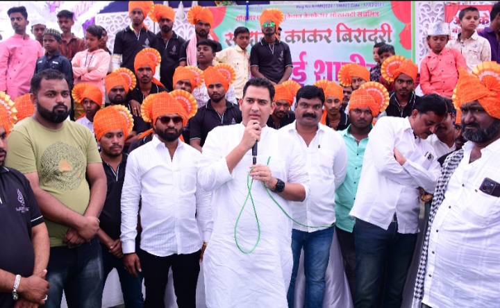 भोजडे येथे सौदागर एकता वेलफेअर सोसायटी संचलित व सौदागर काकर बिरादरी आयोजित सामुदायिक विवाह सोहळ्या प्रसंगी आ. आशुतोष काळे.