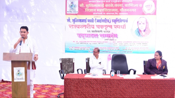 स्व.सौ.सुशीलामाई काळे यांच्या २५ व्या पुण्यस्मरणानिमित्त कर्मवीर शंकरराव काळे एज्युकेशन सोसायटीच्या सौ. सुशिलामाई काळे कला, वाणिज्य व विज्ञान महाविद्यालयात ऑनलाईन ‘राज्यस्तरीय वक्तृत्व स्पर्धेचे’ उदघाटन प्रसंगी आ. आशुतोष काळे बोलत होते.यावेळी पुढे बोलतांना ते म्हणाले की, घर, कुटंब, सामाजिक जबाबदारी सांभाळून कर्मवीर शंकरराव काळे साहेबांनी स्थापन केलेल्या एकमेव असलेल्या गौतम एज्युकेशन सोसायटीच्या भरभराटीत माई आज्जीचे मोठे पाठबळ मिळाले आहे. ग्रामीण भागातील मुलींनी उच्च शिक्षण घेतले पाहिजे, एकही मुलगी उच्च शिक्षणापासून वंचित राहू नये हे त्यांनी पाहिलेलं स्वप्न कर्मवीर शंकररावजी काळे साहेबांनी पूर्ण केले. शिक्षण घेवून किती मोठी पदवी मिळविली यापेक्षा त्या शिक्षणाचा समाजाला व आपल्या कुटुंबाला किती फायदा होतो हे महत्वाचे आहे असे माई आज्जीचे विचार होते. या विचारांवर विद्यार्थ्यांनी वाटचाल करून आपल्या शिक्षणाचा समाजाच्या जडणघडनीत हातभार लावावा असे आवाहन आ. आशुतोष काळे यांनी यावेळी केले.