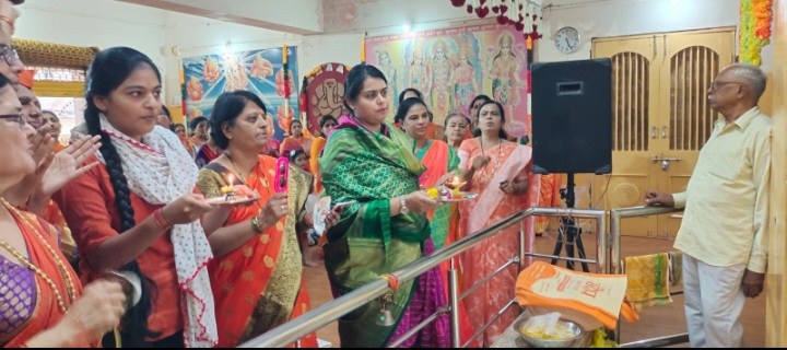 मागील पाचशे वर्षापासून देशभरातील तमाम देशभक्त ज्या सोहळ्याची आतुरतेने वाट पाहत होते तो श्रीराम लल्लाच्या प्राण प्रतिष्ठेचा सोहळा सोमवार (दि.२२) रोजी होत असून देशभर सर्वत्र श्रीराममय वातावरण झाले असुन प्रत्येक मंदिरात धार्मिक कार्यक्रमांचे आयोजन करण्यात आलेले आहे. कोपरगाव शहरात देखील या अभूतपूर्व सोहळ्याच्या पार्श्वभूमीवर श्रीराम मंदिरात विविध महिला मंडळाच्या वतीने आयोजित करण्यात आलेल्या श्री रामरक्षा व श्री हनुमान चालीसा पठण कार्यक्रमाला जिल्हा सहकारी बँकेच्या माजी संचालिका सौ. चैतालीताई काळे यांनी उपस्थित राहून श्री रामरक्षा व श्री हनुमान चालीसाचे पठण केले.