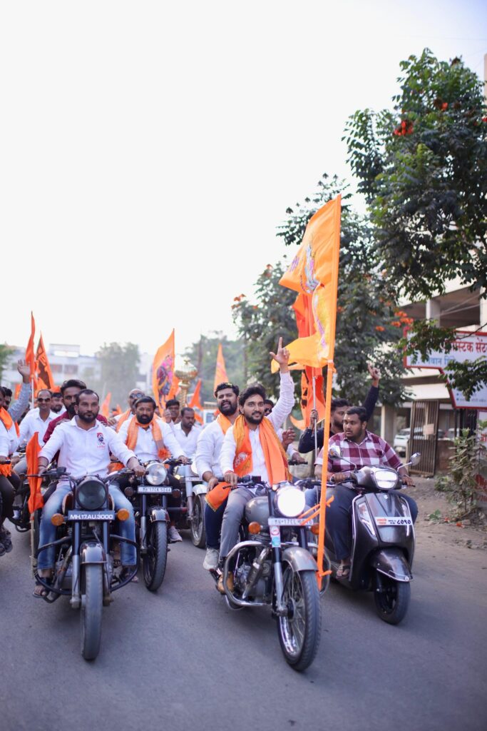 अयोध्येमध्ये सोमवारी (२२ जानेवारी) होणाऱ्या ऐतिहासिक प्रभू श्रीराम मूर्ती प्राणप्रतिष्ठा सोहळ्याच्या पार्श्वभूमीवर कोपरगाव शहरात रविवारी (२१ जानेवारी) सायंकाळी वाजतगाजत भव्य भगवा मोटारसायकल रॅली काढण्यात आली. या रॅलीमध्ये सहकारमहर्षी शंकरराव कोल्हे सहकारी साखर कारखान्याचे अध्यक्ष युवा नेते विवेकभैय्या कोल्हे व संजीवनी ग्रुप ऑफ इन्स्टिट्यूटचे विश्वस्त सुमितभैय्या कोल्हे यांनी आपल्या असंख्य कार्यकर्त्यांसह सहभाग नोंदवला. ही रॅली शहरातून परिक्रमा करीत असताना ‘जय श्रीराम’ च्या घोषणांनी अवघे शहर दुमदुमून गेले होते.