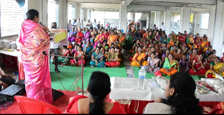 महाराष्ट्र प्रांतिक तैलिक महासभा महिला आघाडीच्या वतीने हळदी कुंकू समारंभ प्रसंगी महिला भगिनींशी संवाद साधतांना सौ. चैतालीताई काळे.