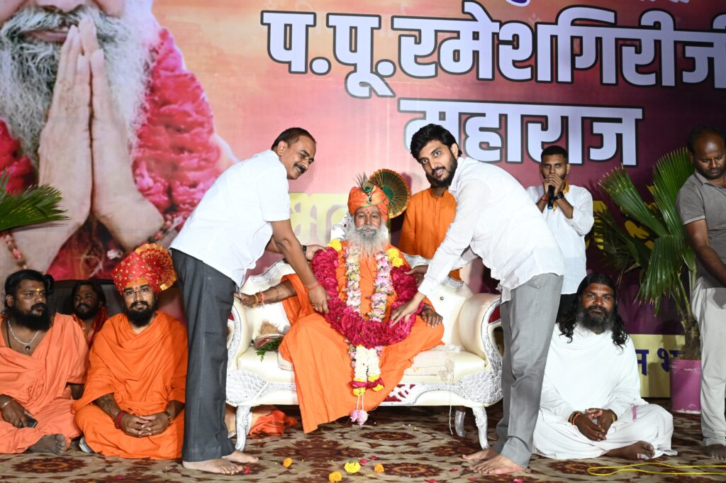 अयोध्या येथील नव्याने बांधलेल्या श्रीराम मंदिराचे उदघाटन व श्री रामलल्लाच्या मूर्तीची प्रतिष्ठापना सोहळा गेल्या २२ जानेवारी रोजी पंतप्रधान नरेंद्र मोदी यांच्या हस्ते पार पाडला. या ऐतिहासिक सोहळ्यास उपस्थित राहून प. पू. स्वामी रमेशगिरी महाराज यांचे बुधवारी (२८ फेब्रुवारी) सायंकाळी कोपरगाव येथे आगमन झाल्यानंतर फटाक्यांची आतषबाजी व फुलांची उधळण करीत त्यांचे जंगी स्वागत करण्यात आले. त्यांची शहरातून भक्तिमय वातावरणात वाजतगाजत भव्य मिरवणूक काढण्यात आली. युवा नेते विवेकभैय्या कोल्हे यांनी प. पू. स्वामी रमेशगिरी महाराजांचे कोपरगाव विधानसभा मतदारसंघातील जनतेच्या व संजीवनी उद्योग समूह व कोल्हे परिवाराच्या वतीने पुष्पहार घालून स्वागत करून संत पूजन केले व आशीर्वाद घेतले. तसेच संजीवनी ग्रुप ऑफ इन्स्टिट्यूटचे अध्यक्ष नितीनदादा कोल्हे यांनी रमेशगिरी महाराजांचे स्वागत केले. विवेकभैय्या कोल्हे यांनी मिरवणुकीत सहभागी होत प. पू. रमेशगिरीजी महाराज व अन्य संतगण विराजमान झालेल्या रथाचे सारथ्य केले. राष्ट्रसंत जनार्दन स्वामी महाराज मंदिर येथे आयोजित स्वागत सोहळ्यास उपस्थित राहून युवानेते विवेकभैय्या कोल्हे आणि आमृत संजीवनीचे चेअरमन पराग संधान यांनी महंत रमेशगिरी महाराज यांचे पूजन करून आशीर्वाद घेतले.