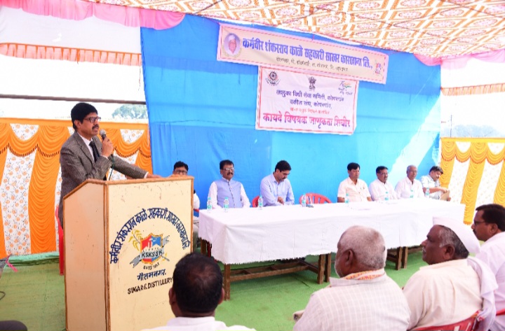 कर्मवीर शंकरराव काळे सहकारी साखर कारखाना, तालुका विधी सेवा समिती कोपरगाव व कोपरगाव वकील संघ यांचे संयुक्त विद्यमाने बुधवार (दि.२८) रोजी सकाळी ९.०० वा. कर्मवीर शंकरराव काळे सहकारी साखर कारखाना कार्यस्थळावर ऊसतोडणी कामगारांसाठी कायदेविषयक शिबिराचे आयोजन कोपरगाव येथील जिल्हा न्यायाधीश एस.बी. कोऱ्हाळे यांचे अध्यक्षतेखाली संपन्न झाले.