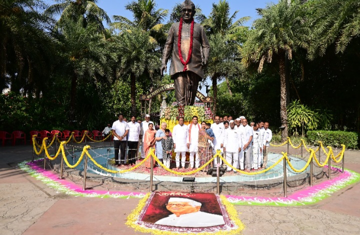 कर्मवीर शंकरराव काळे मित्र मंडळाच्या वतीने सालाबादप्रमाणे याहीवर्षी कोसाका उद्योग समुहाचे संस्थापक शिक्षण महर्षी माजी खासदार कर्मवीर शंकररावजी काळे यांची १०३ वी जयंती कारखाना कार्यस्थळावरील कर्मवीर शंकरराव काळे स्मृती उद्यान गौतमनगर येथे मोठ्या उत्साहात साजरी करण्यात आली. यावेळी कर्मवीर शंकररावजी काळे यांना अभिवादन करण्यासाठी कर्मवीर शंकरराव काळे सहकारी साखर कारखाना, उद्योग समूह व सर्व सलग्न संस्थांचे चेअरमन, व्हा.चेअरमन, पदाधिकारी, शैक्षणिक, सामाजिक क्षेत्रातील कार्यकर्ते व हितचिंतकांनी मोठ्या संख्येने गर्दी केली याप्रसंगी माजी आमदार अशोकराव काळे, गौतम बँकेच्या माजी संचालिका सौ. पुष्पाताई काळे, आ. आशुतोष काळे, जिल्हा बँकेच्या माजी संचालिका सौ. चैतालीताई काळे, कर्मवीर शंकरराव काळे मित्रमंडळाचे अध्यक्ष कारभारी आगवण, उपाध्यक्ष नारायण मांजरे, अॅड. प्रमोद जगताप, कर्मवीर शंकरराव काळे सहकारी साखर कारखान्याचे व्हा. चेअरमन डॉ. मच्छिंद्र बर्डे, सर्व संचालक मंडळ, गौतम बँकेचे माजी चेअरमन बाबासाहेब कोते, संचालक सिकंदर पटेल, कारखान्याचे प्रभारी कार्यकारी संचालक सुनील कोल्हे, आसवनी विभागाचे जनरल मॅनेजर ज्ञानेश्वर आभाळे, सेक्रेटरी बाबा सय्यद, असि. सेक्रेटरी संतोष शिरसाठ, माजी जिल्हा परिषद, पंचायत समिती सदस्य, रयत शिक्षण संस्थेच्या सर्व शाळा-महाविद्यालयाचे प्राचार्य, प्राध्यापक, शिक्षकेत्तर कर्मचारी व कर्मवीर शंकरराव काळे सहकारी साखर कारखाना व उद्योग समुहावर प्रेम करणारे हितचिंतक व कार्यकर्ते मोठ्या संख्येने उपस्थित होते. तसेच कोपरगाव शहरातील पंचायत समितीच्या प्रांगणात उभारण्यात आलेल्या कर्मवीर शंकरराव काळे यांच्या पूर्णाकृती पुतळ्यास देखील आ. आशुतोष काळे यांनी पुष्पांजली अर्पण करून अभिवादन केले यावेळी मा.जी.प.सदस्य राजेश परजणे,राजेश ठोळे, माजी नगराध्यक्ष विजय वहाडणे, डॉ. अजय गर्जे, संजय भन्साळी, प्रेम भंडारी, गौतम बँक संचालक दत्तात्रय खेमनर, मुन्ना सय्यद, आदी मान्यवर मोठ्या संख्येने मा.खा. कर्मवीर शंकररावजी काळे साहेब यांच्या १०३ व्या जयंतीनिमित्त अभिवादन करतांना मा.आ.अशोकराव काळे, सौ. पुष्पाताई काळे, आ.आशुतोष काळे, सौ.चैतालीताई काळे,अॅड. प्रमोद जगताप, मंडळाचे अध्यक्ष कारभारी आगवण, उपाध्यक्ष नारायण मांजरे आदी.
