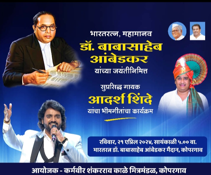 त्यामुळे नगर जिल्ह्यातील कोपरगाव तालुक्यात आ. आशुतोष काळे यांच्या संकल्पनेतून प्रथमच महागायक आदर्श शिंदे यांच्या भिमगीतांच्या कार्यक्रमाचे आयोजन करण्यात आले असल्यामुळे या कार्यक्रमासाठी देखील मोठी गर्दी होण्याची शक्यता गृहीत धरून कोपरगाव शहरासह तालुक्यातून मोठा भिमसागर लोटणार आहे. त्यामुळे रविवार (दि.२१) रोजी सायंकाळी ५.०० वाजता होणाऱ्या या कार्यक्रमाची आ. आशुतोष काळे यांच्या मार्गदर्शनाखाली कर्मवीर शंकरराव काळे मित्र मंडळ व भीम सैनिकांच्या वतीने जय्यत तयारी सुरु करण्यात आली असल्याची माहिती कर्मवीर शंकरराव काळे मित्र मंडळाच्या वतीने दिली आहे.